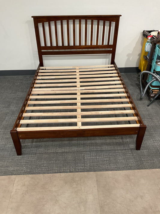 Dark Wood Queen Bed Frame with Slatted Headboard (A60)