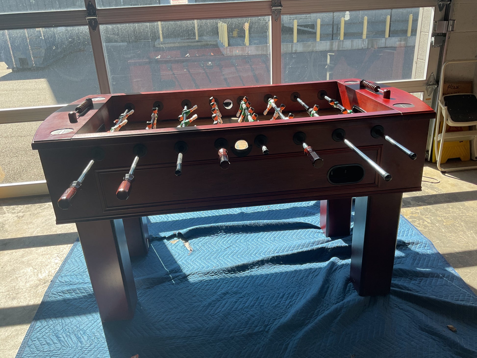 Experience the thrill of fast-paced foosball action with the AH Foosball Table! This high-quality table offers smooth gameplay and sturdy construction, perfect for enthusiastic players. Bring the excitement of the arcade into your own home and challenge your friends and family to endless fun!