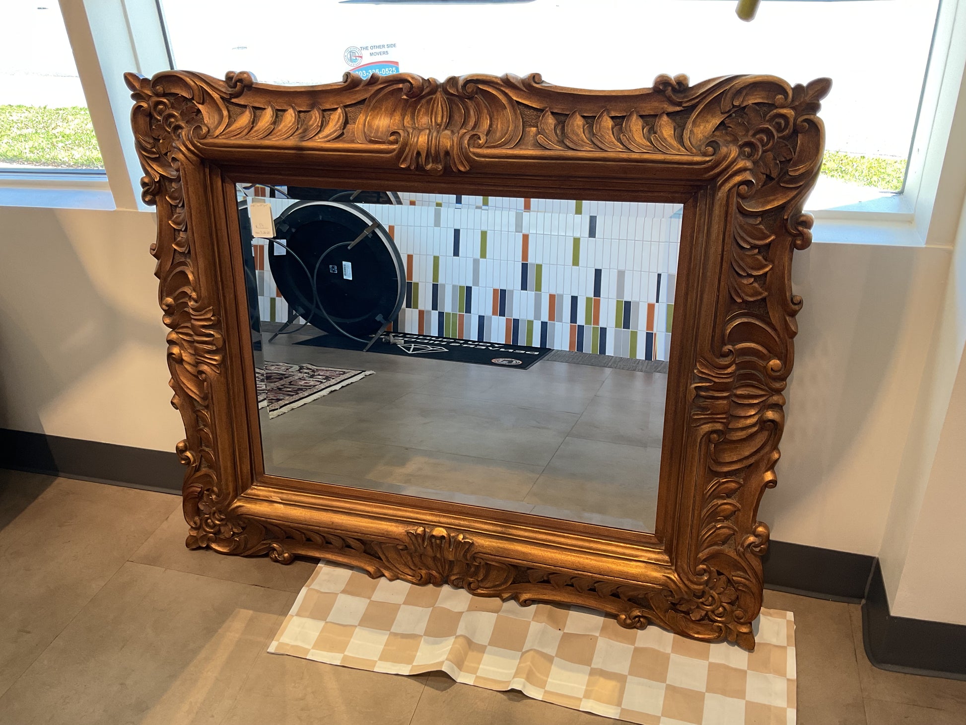 The Aquarius Mirror features a luxurious gold frame that adds a touch of elegance to any room. Enhance your space with this beautiful mirror that combines style and functionality. Expertly crafted, this mirror will elevate your decor and provide the perfect reflection.