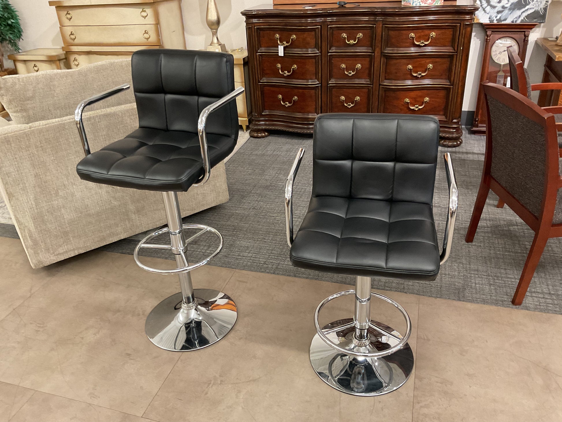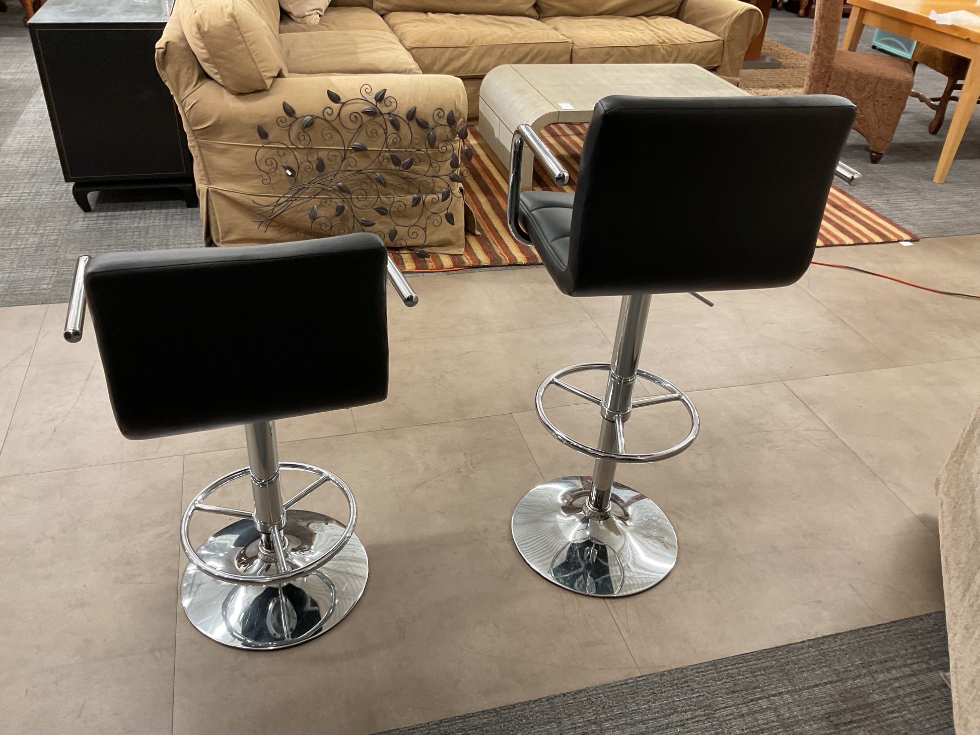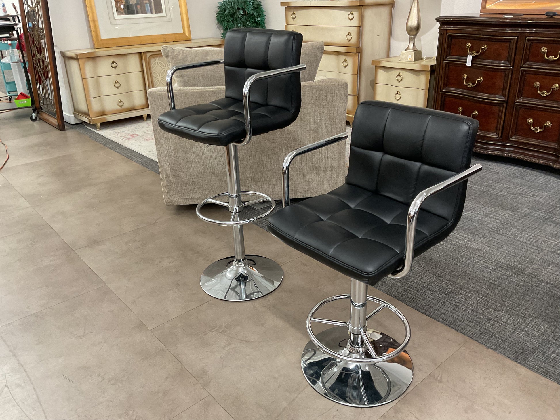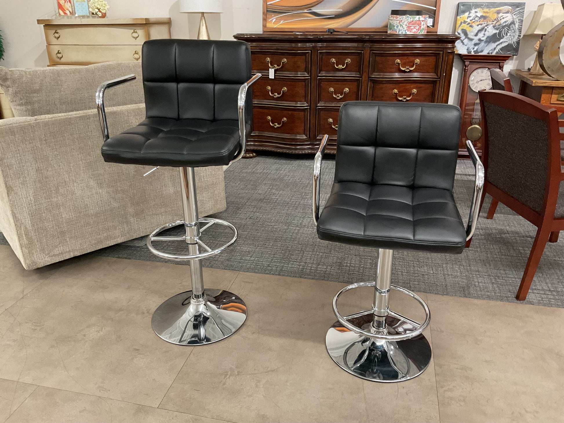 Elevate your bar setup with Ed & Eddie's 2 black and metal adjustable bar stools. Customize the height to your preference, while the sleek design adds a modern touch. Perfect for any space, these stools provide comfort and a contemporary aesthetic.