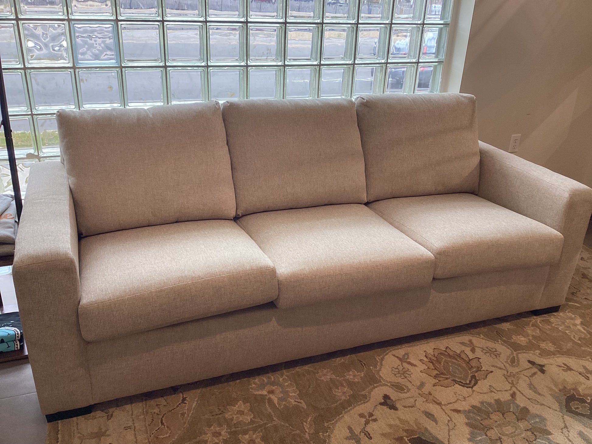 The Flex Steel Sandy Brown sofa offers stylish comfort with its 3 seater design and cream color. Its Flex Steel material provides long-lasting durability for everyday use. Perfect for any living space, this sofa is the ultimate combination of functionality and style.
