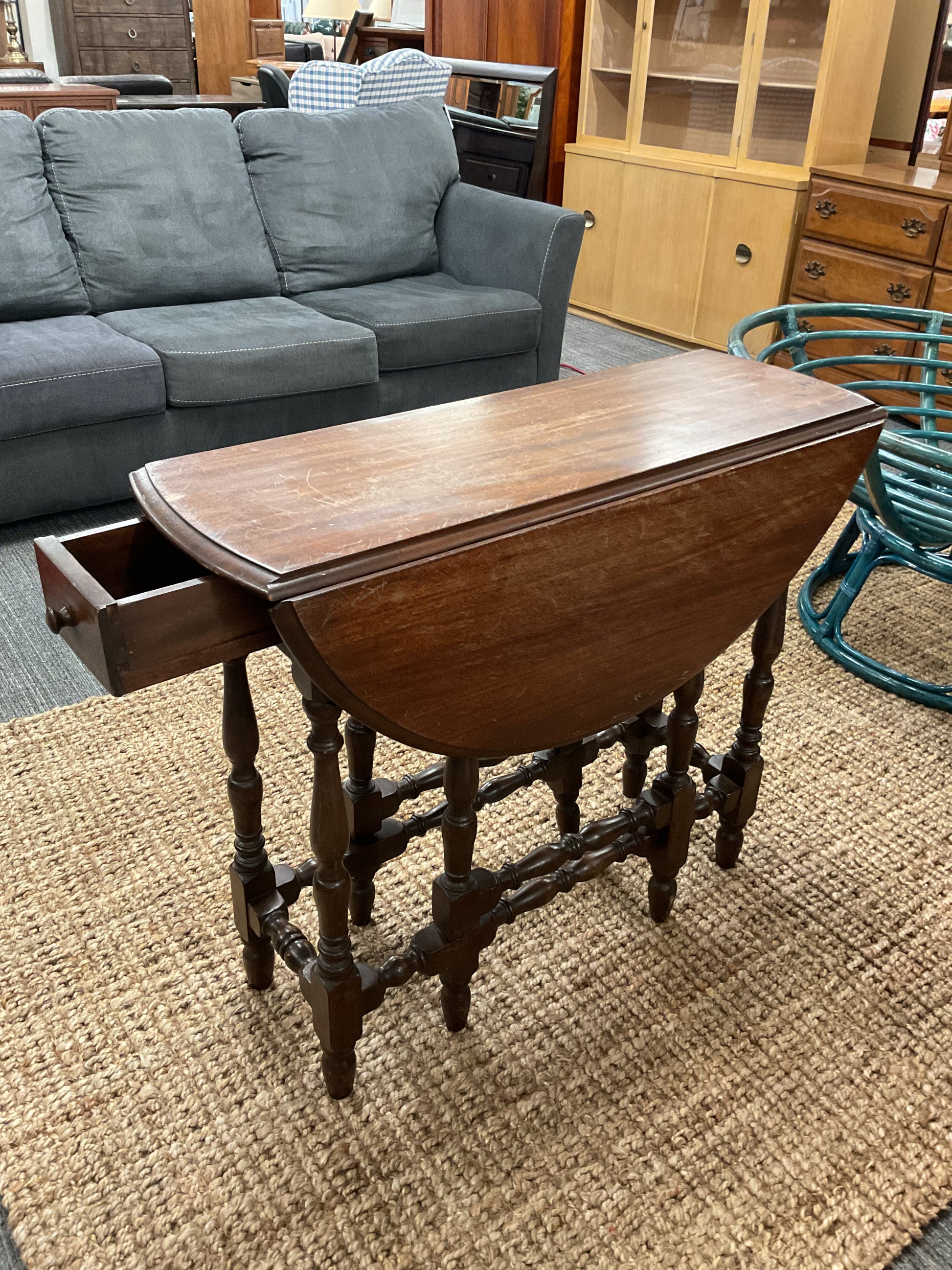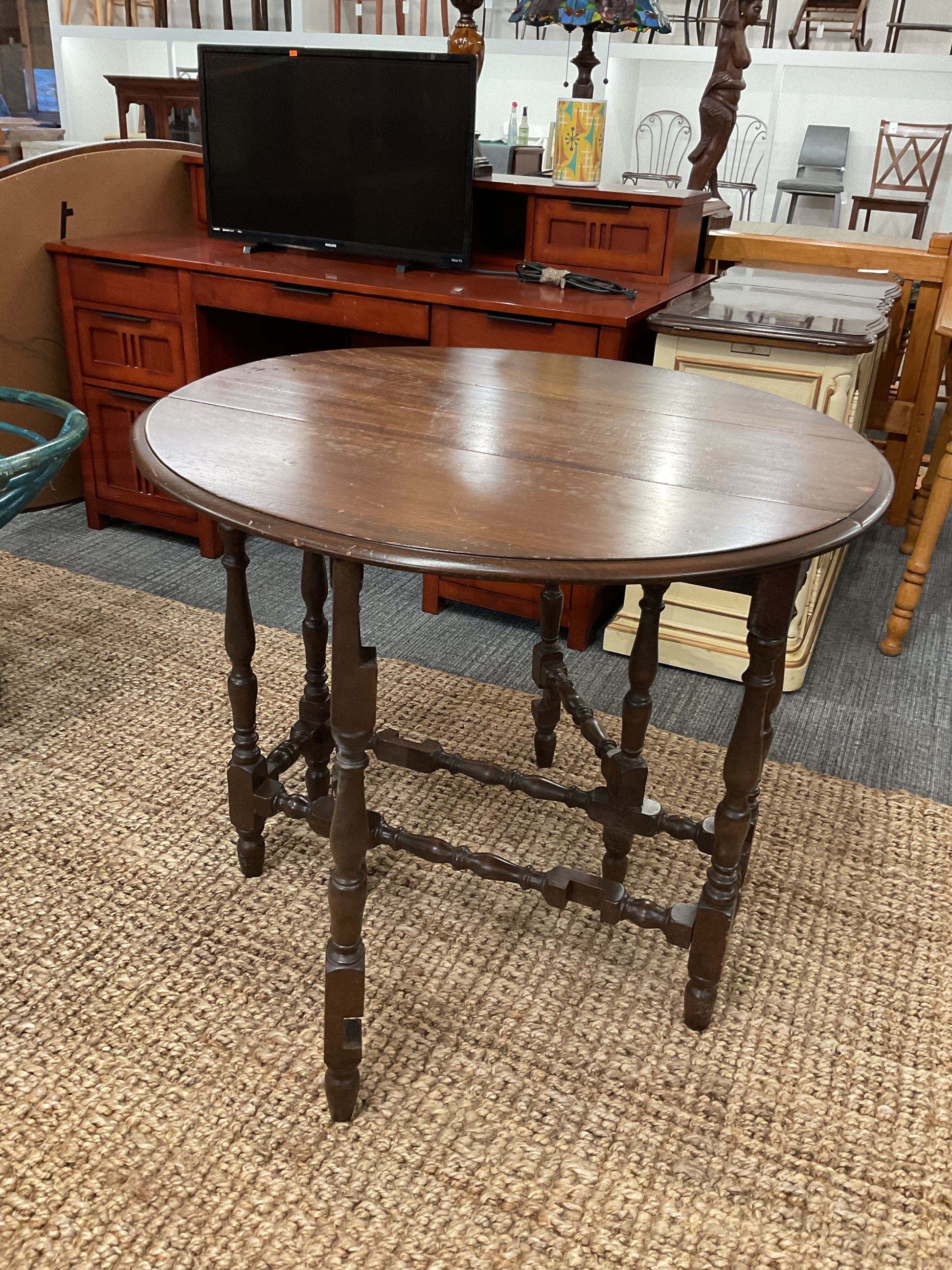 Expertly crafted and versatile, our Gate Leg Table is a timeless addition to any home. This antique table features a unique gate leg design that allows it to adjust in size, making it perfect for small spaces or large gatherings. Experience the convenience and elegance of this must-have piece.