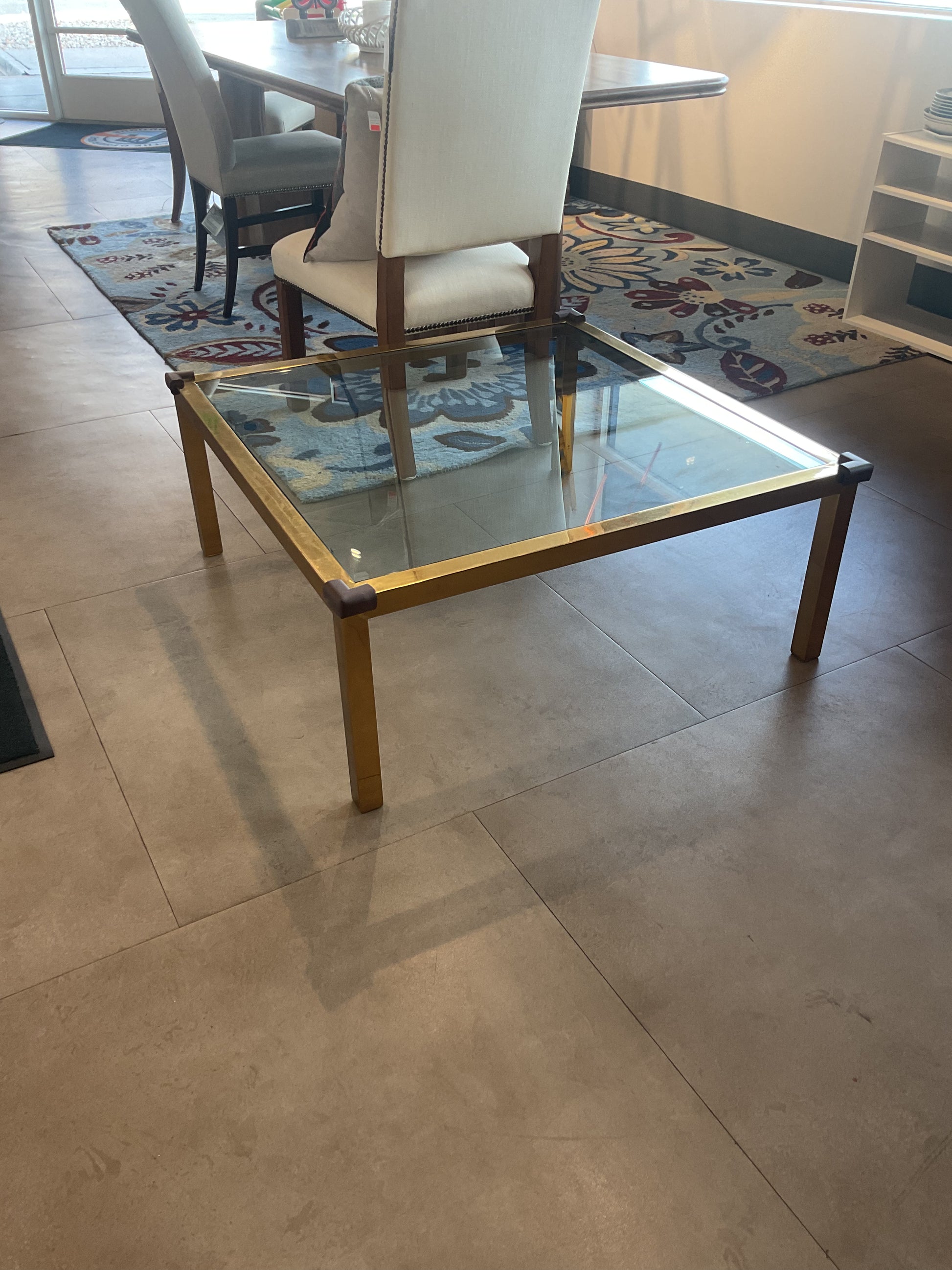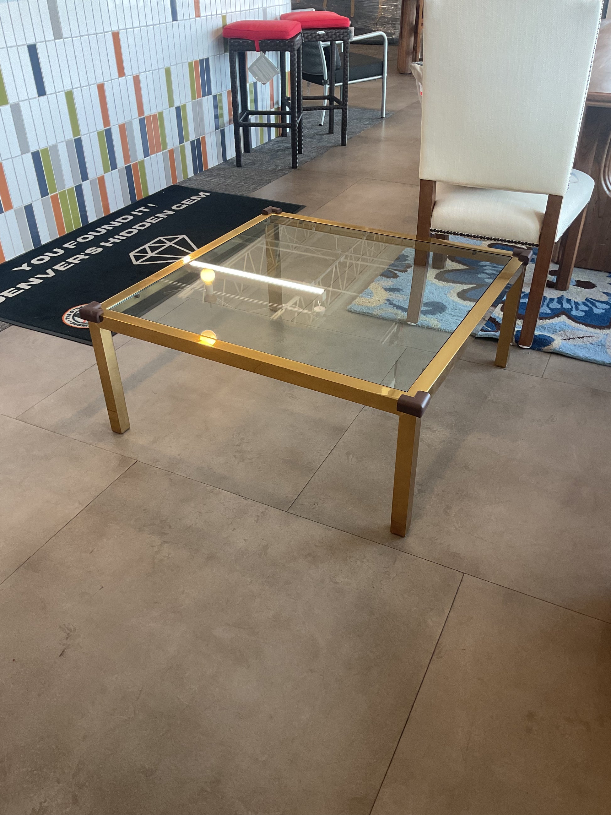 This elegant gold coffee table adds a touch of sophistication to any living space. Its sleek design and durable construction make it both functional and stylish. With its versatile color, it can easily complement any decor and elevate the overall aesthetic of a room. Enhance your home with this luxurious piece. Refer to photos for damages.