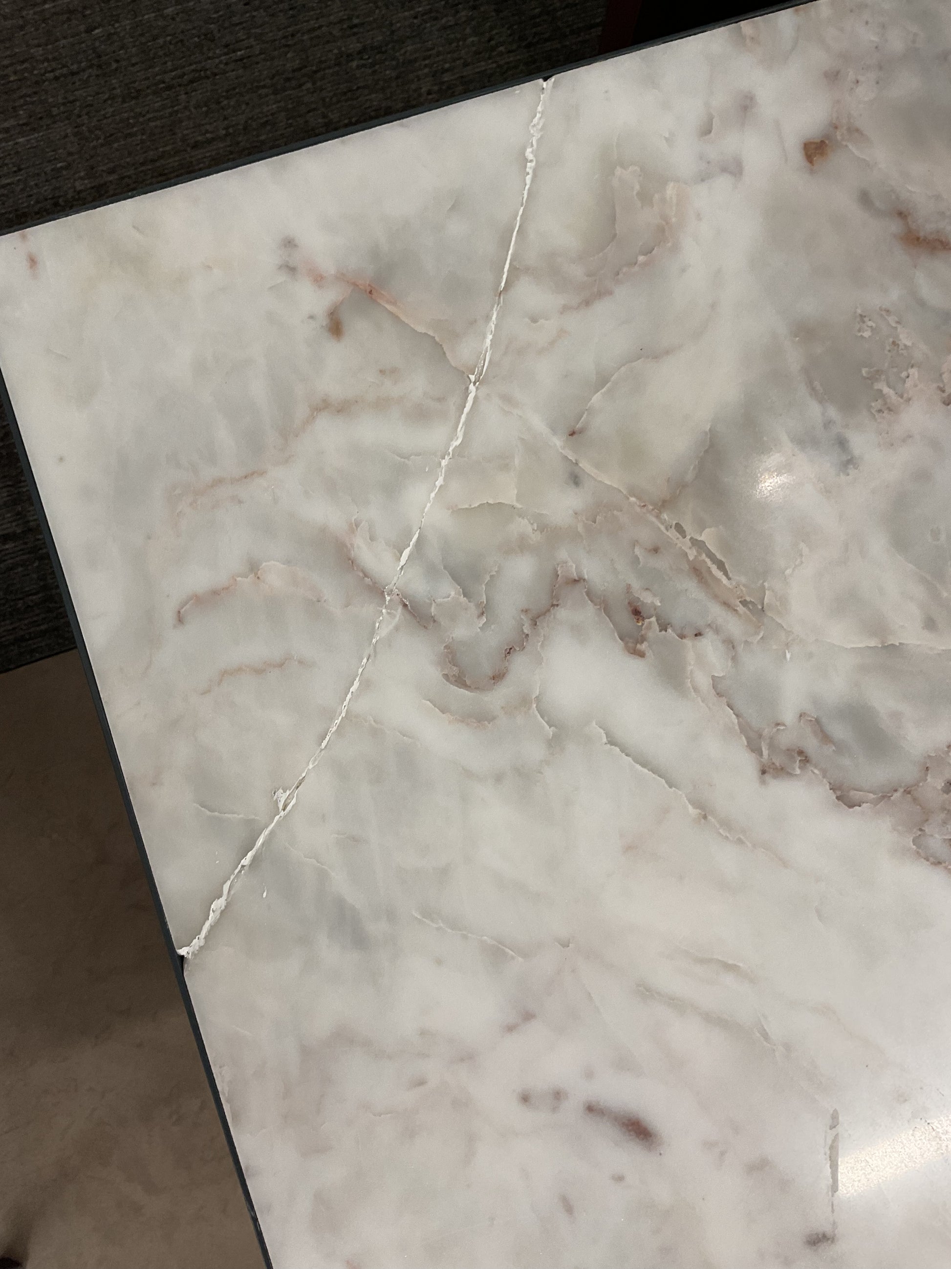 Upgrade your living space with our modern Granite Top Side Table. Featuring a sleek and durable granite top, this side table adds a touch of sophistication to any room. Its versatile design makes it perfect for holding drinks, books, and more. Elevate your home decor with this stylish and functional piece. Please refer to photos for any damages.