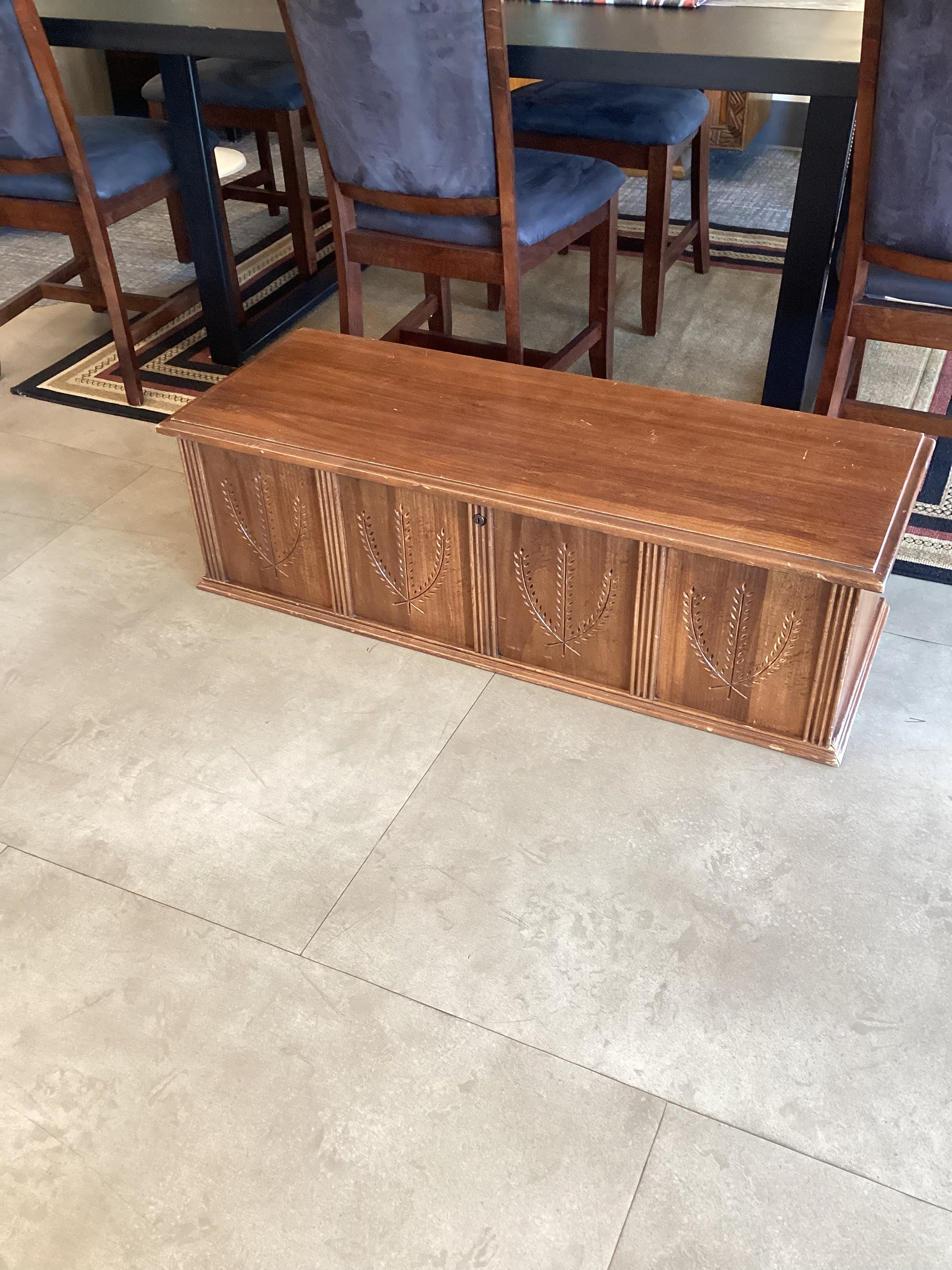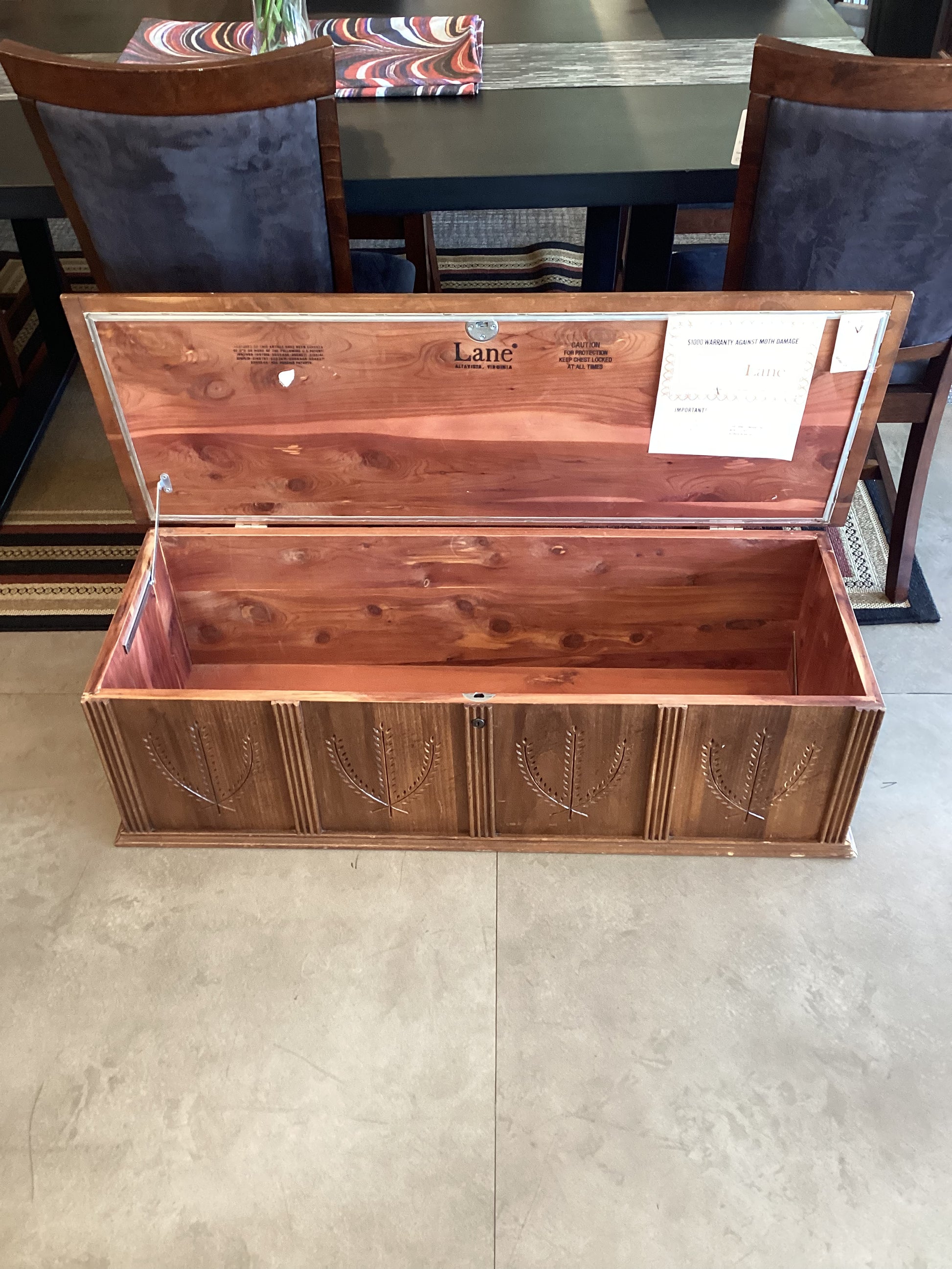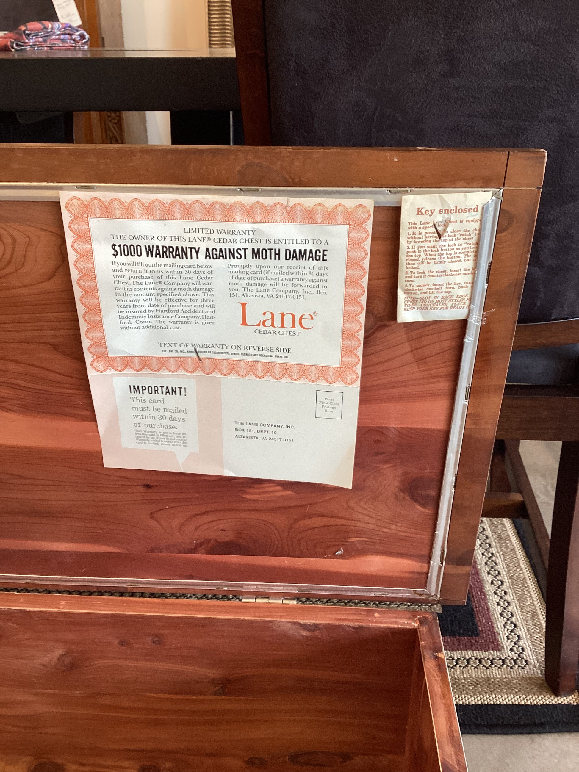 Experience the classic craftsmanship of Lane with this Lane Chest W/ Key. Crafted with quality materials, this chest features a secure key lock for added protection. Store your valuables in style and peace of mind with this timeless piece. Refer to photos for damages.