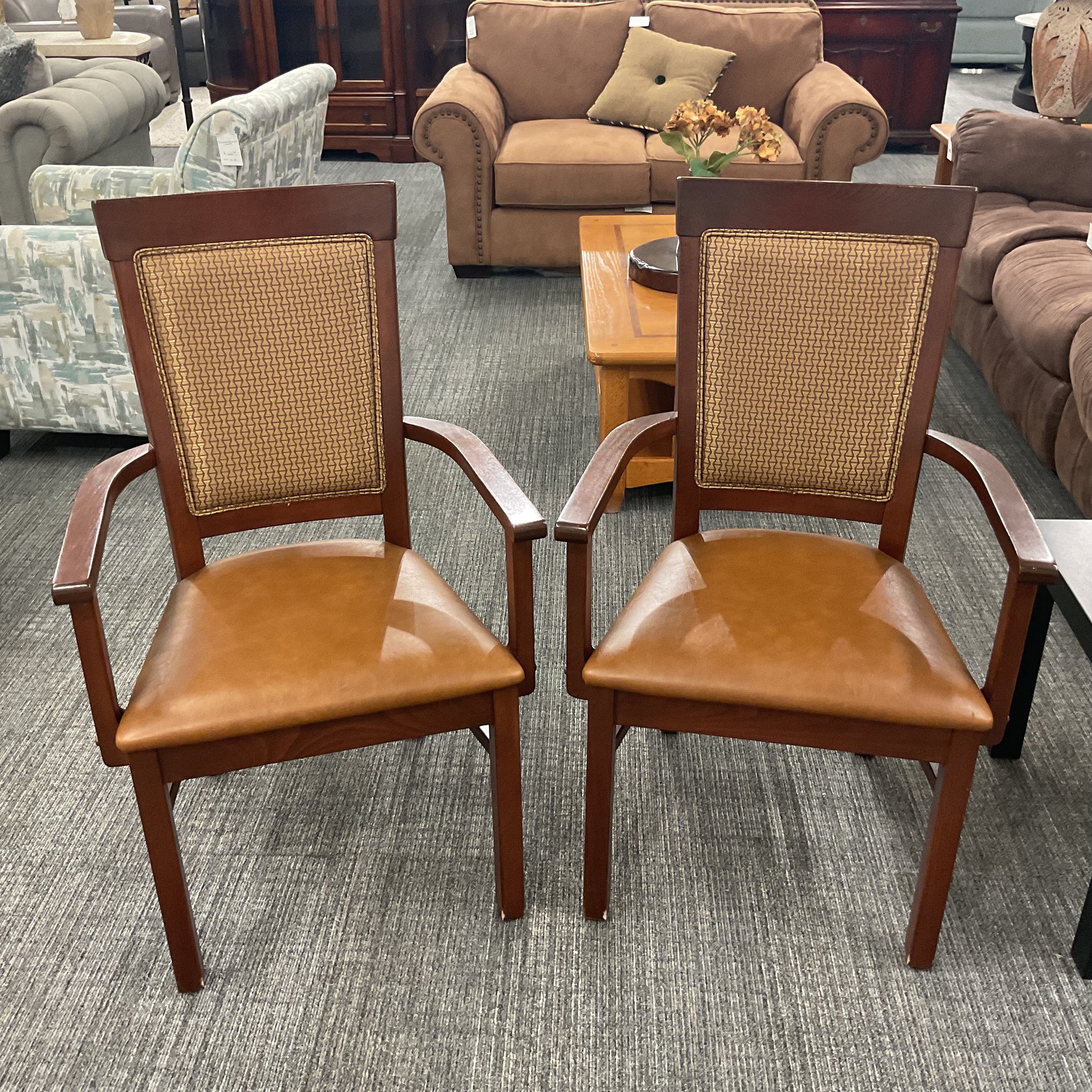 Introduce timeless elegance to your space with the Maxwell Thomas Chair Pair. Crafted from solid wood with a hickory finish, this pair of arm chairs adds sophistication to any room. The slight scuffs on the arms and legs give them character and charm. Enjoy comfortable and stylish seating with these chairs.