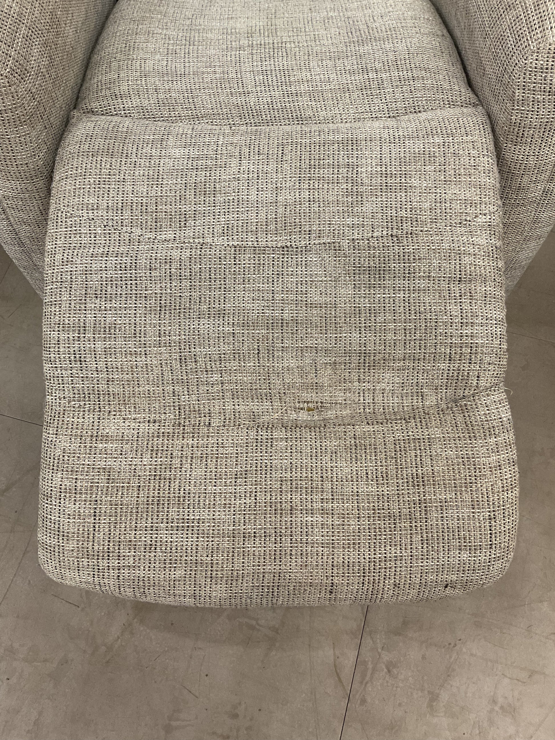 Experience ultimate comfort and relaxation with the Oogieboogie Recliner. With its single seater design, you can easily unwind and recline in style. The perfect addition to any living room or home theater, this recliner offers superior support and functionality for your everyday needs. Upgrade your seating experience today. The recliner does have stains on the foot rest even after shampooing and has small tears on foot rest.