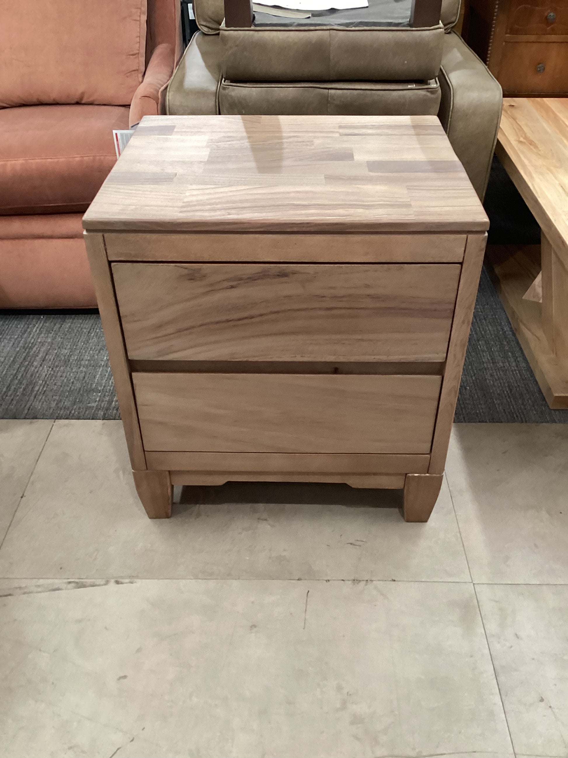 Enhance your bedroom decor with the Parota Nova 2 Drawer nightstand. Made from durable Parota wood, this nightstand features two spacious drawers for convenient storage. The unique wood grain and sleek design add a sophisticated touch to any room. Upgrade your space with this functional and stylish piece.