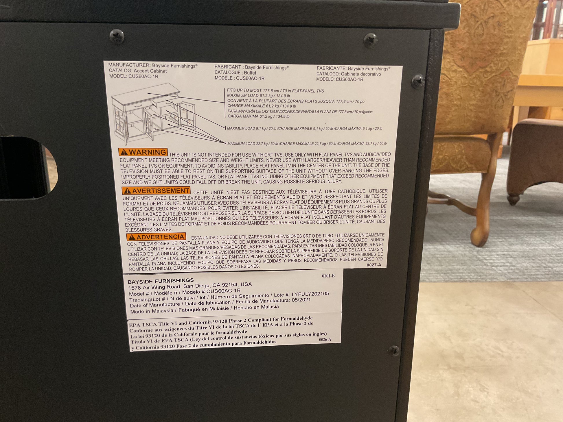 H-38”W-60”D-20”
