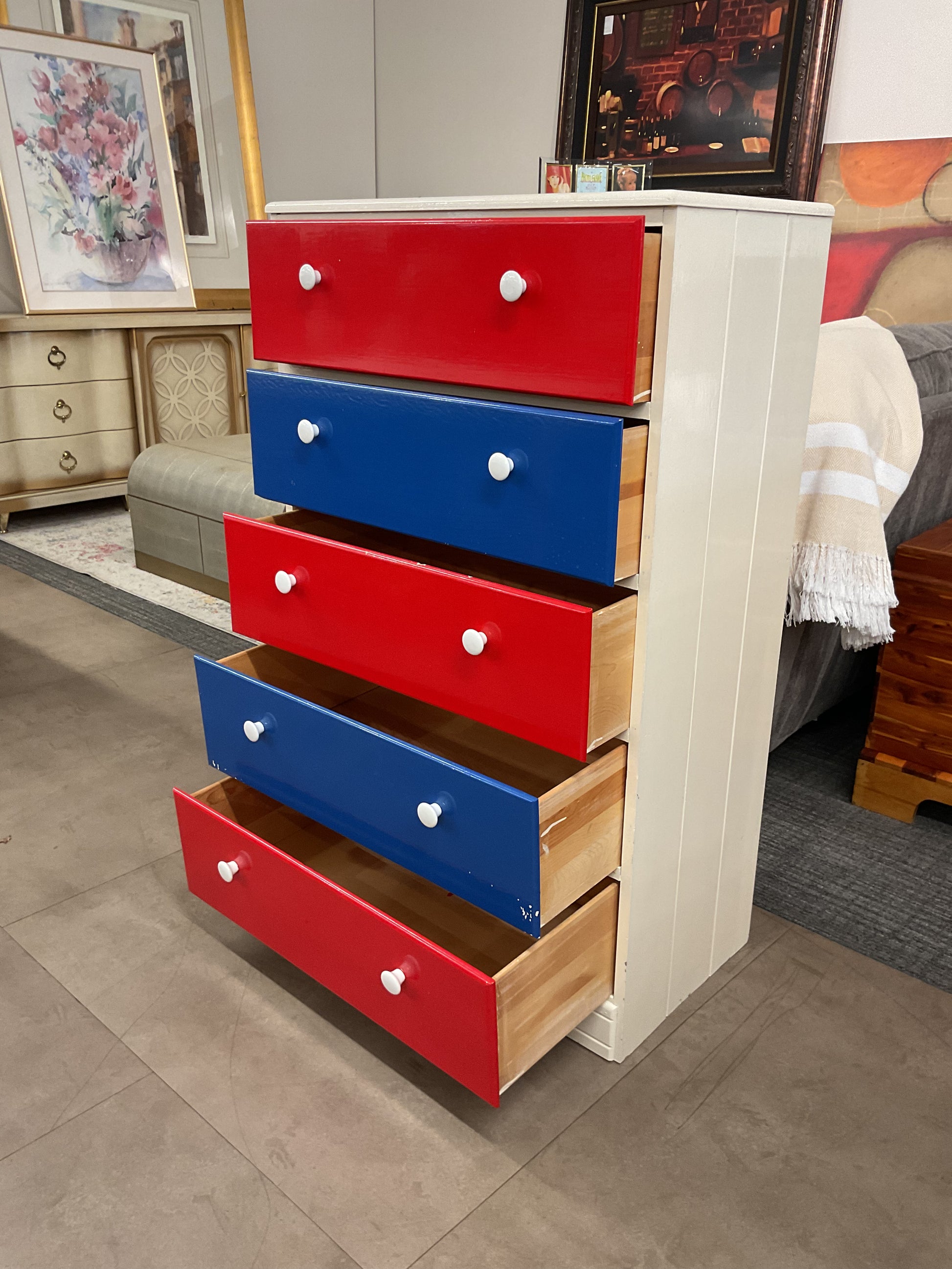 Red, White, & Clothes provides a sleek and stylish dresser to complete your bedroom. With its red and white color scheme, this dresser adds a pop of color and personality to any room. Keep your clothes organized and your bedroom looking fabulous with Red, White, & Clothes!