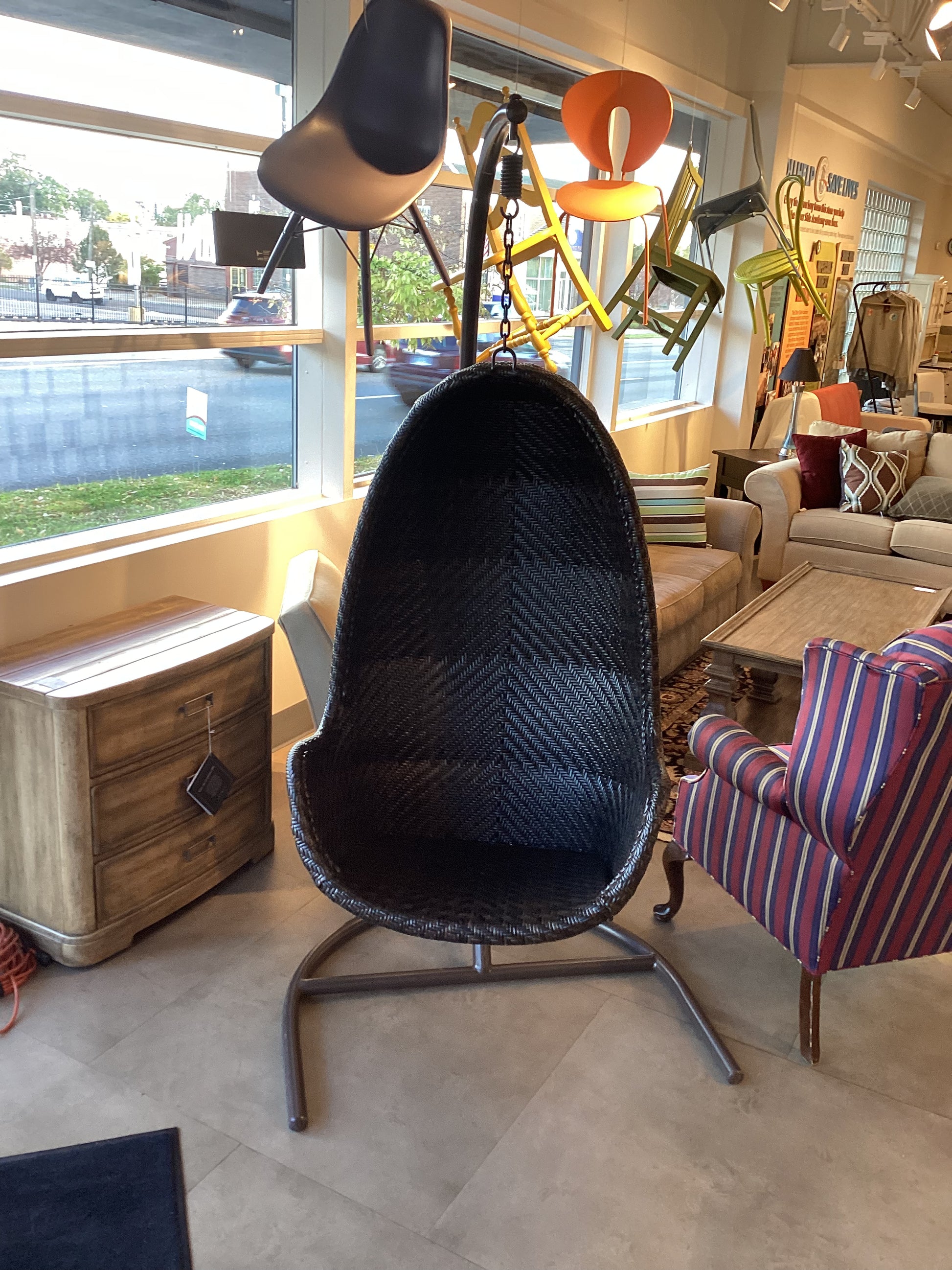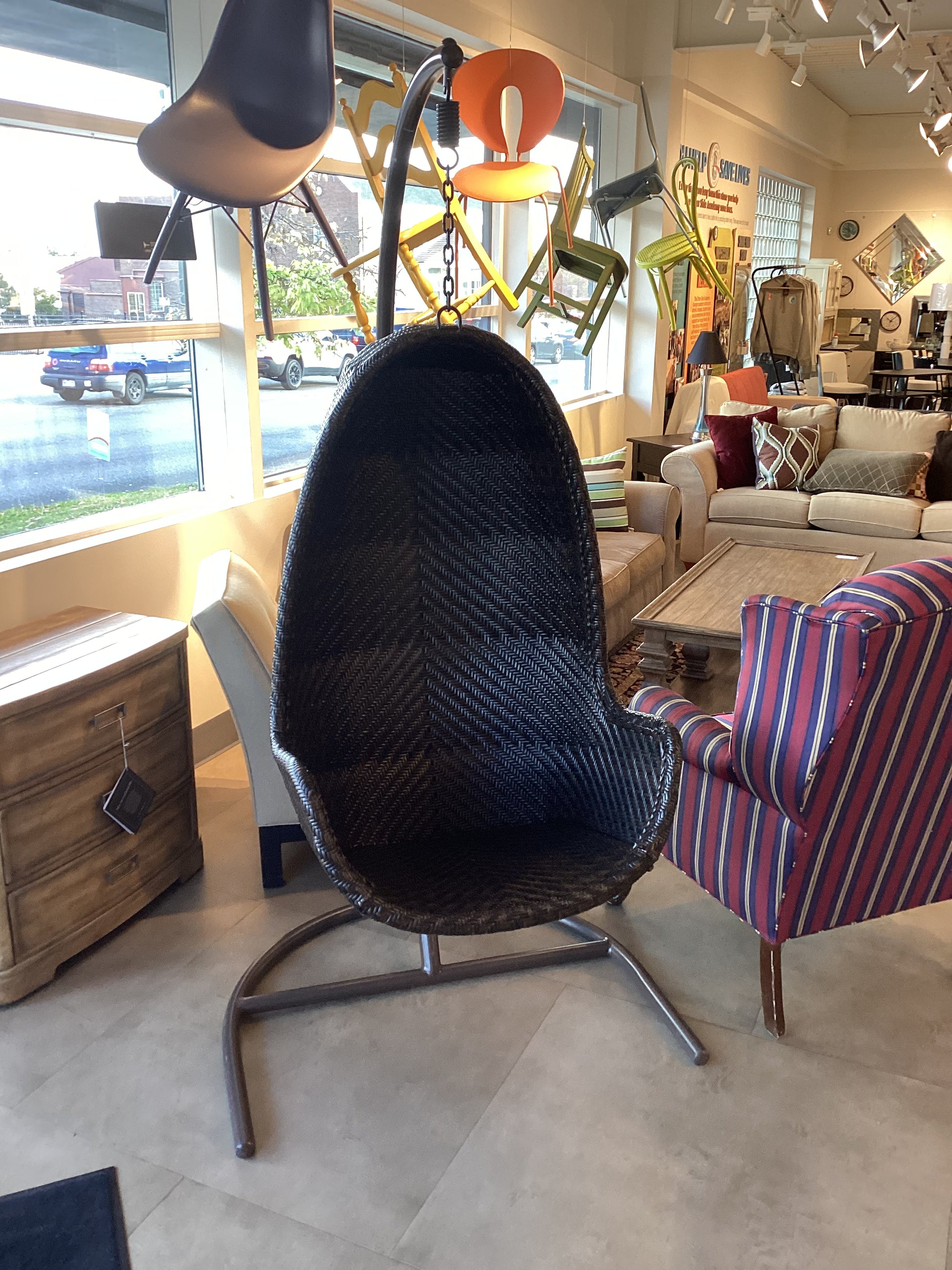 Introducing the Swinging Egg, the ultimate comfort chair for your outdoor space. With its unique design, this chair provides a gentle swinging motion that promotes relaxation and tranquility. Crafted with quality materials, it offers a durable and stylish addition to any patio or porch. Enhance your outdoor experience with the Swinging Egg.