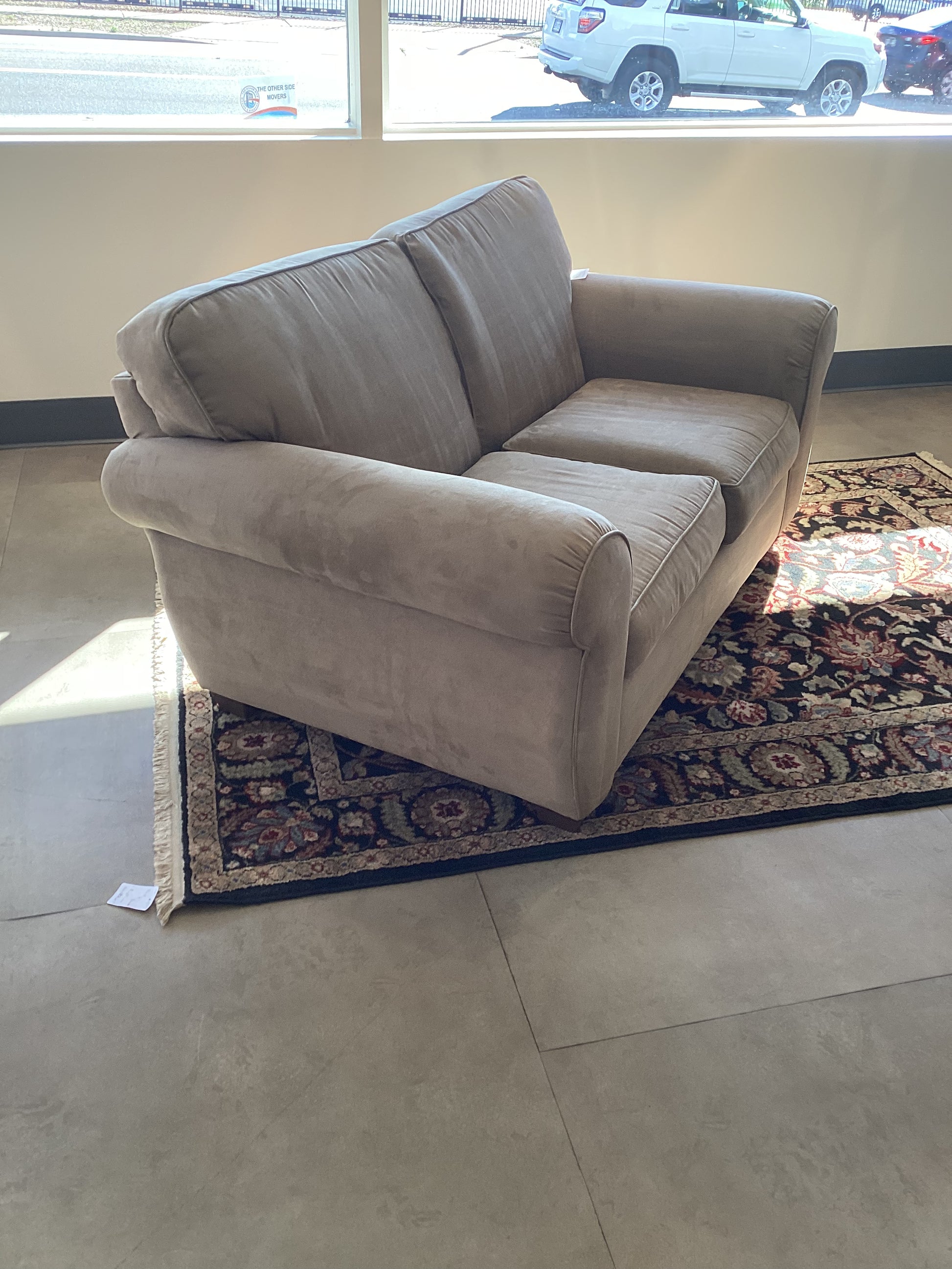 This tan loveseat provides a sleek and stylish addition to any living space. Crafted with high-quality materials, it offers comfortable seating and a modern design. With its neutral color, it effortlessly complements any decor. Add a touch of sophistication and comfort to your home with this tan loveseat.