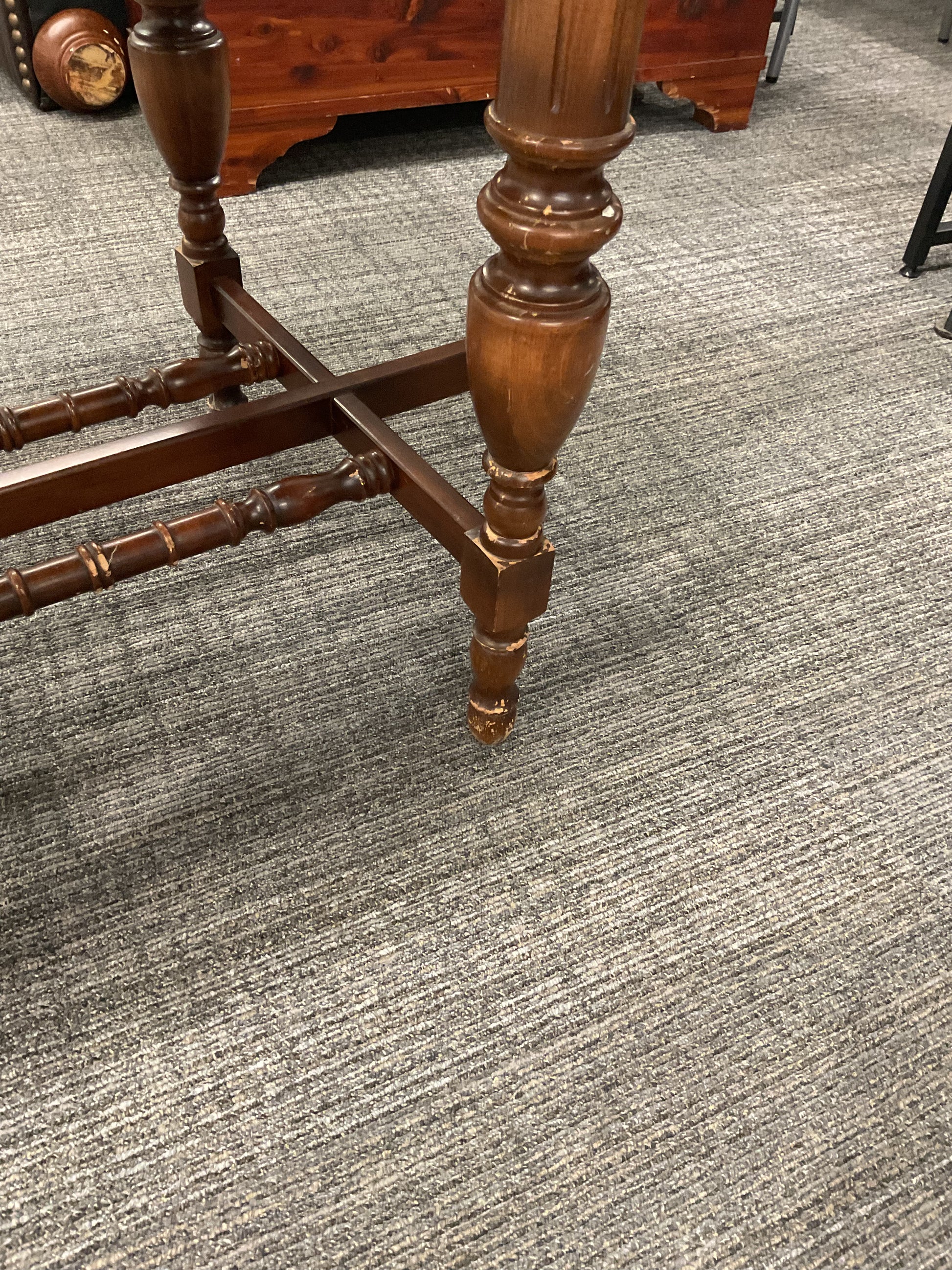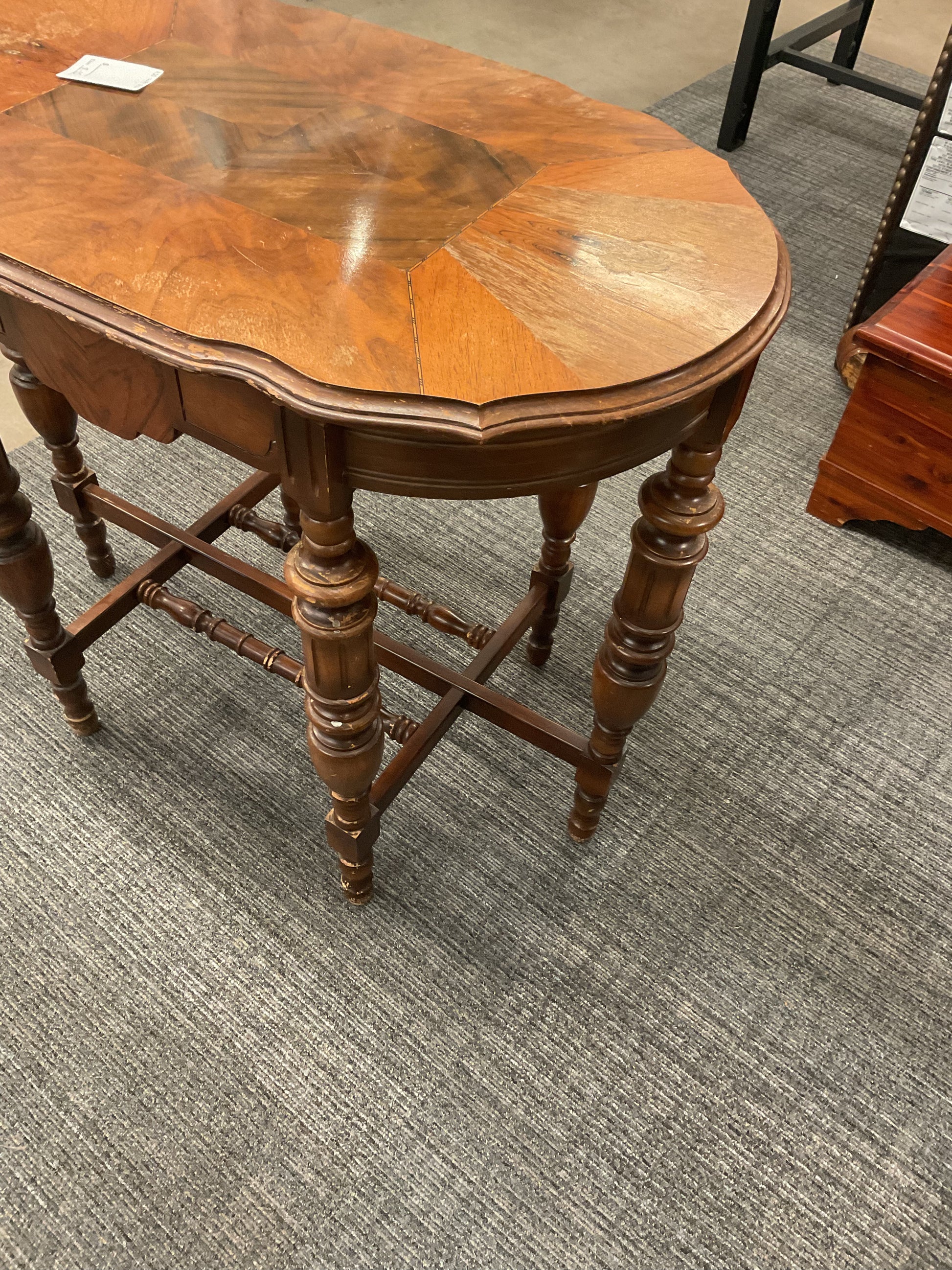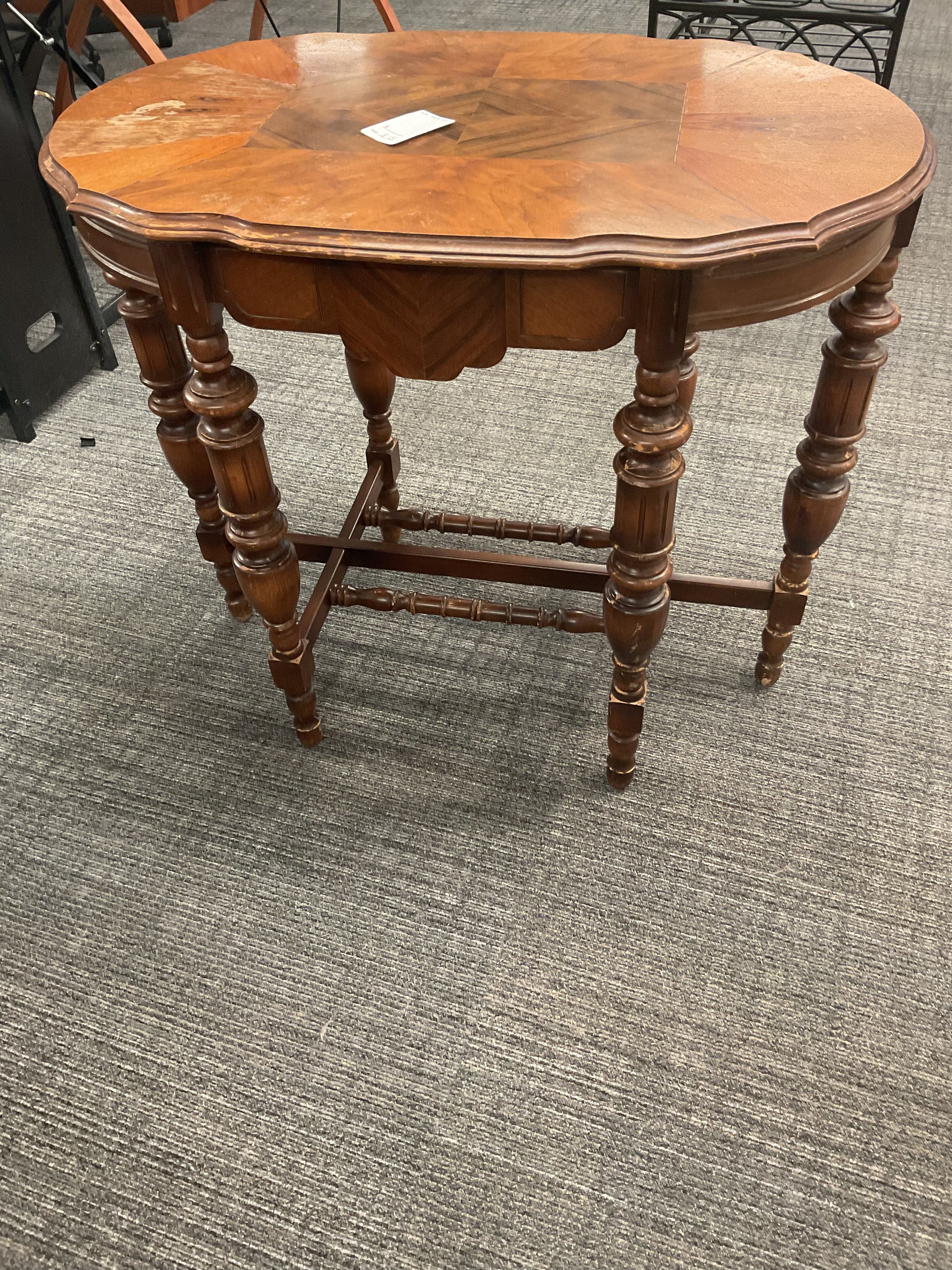 Expertly crafted, The Victorian table adds a touch of elegance to any room. With its intricate design and sturdy build, it is perfect for both practical use and as a statement piece. Made with high-quality materials, it is built to last for generations. Please refer to photos for any damages.