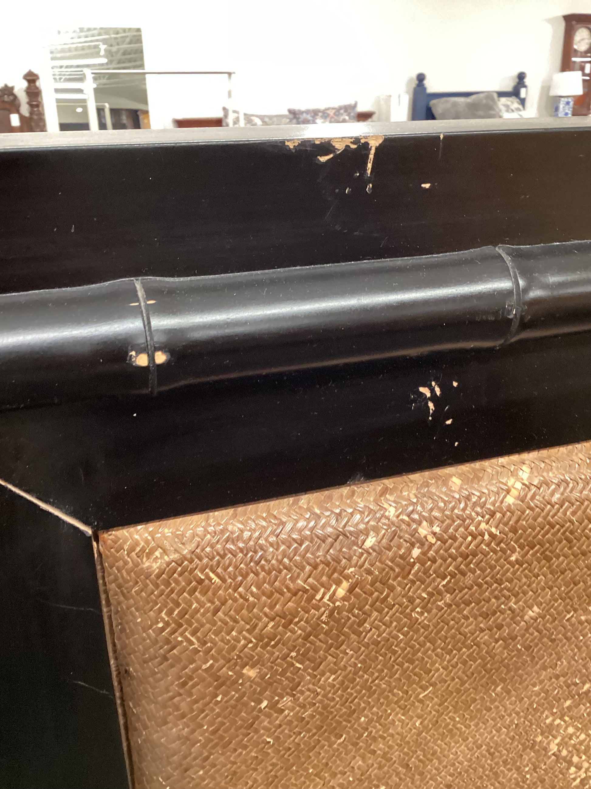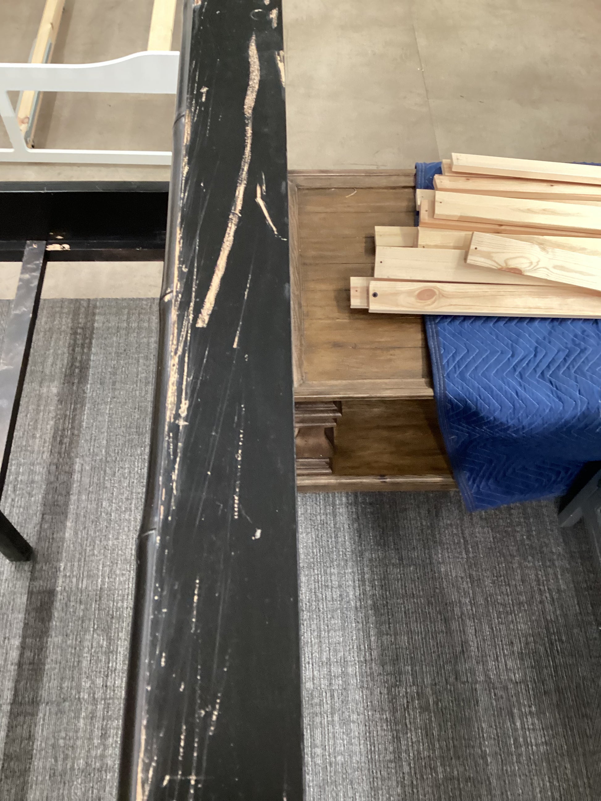Upgrade your bedroom with the Tropic Thunder queen bed frame. This sturdy and stylish frame will add a touch of elegance to any room. Experience the benefits of a solid bed frame that supports and enhances your quality of sleep. Unwind and relax in your newly upgraded room. Please refer to photos for any damages.