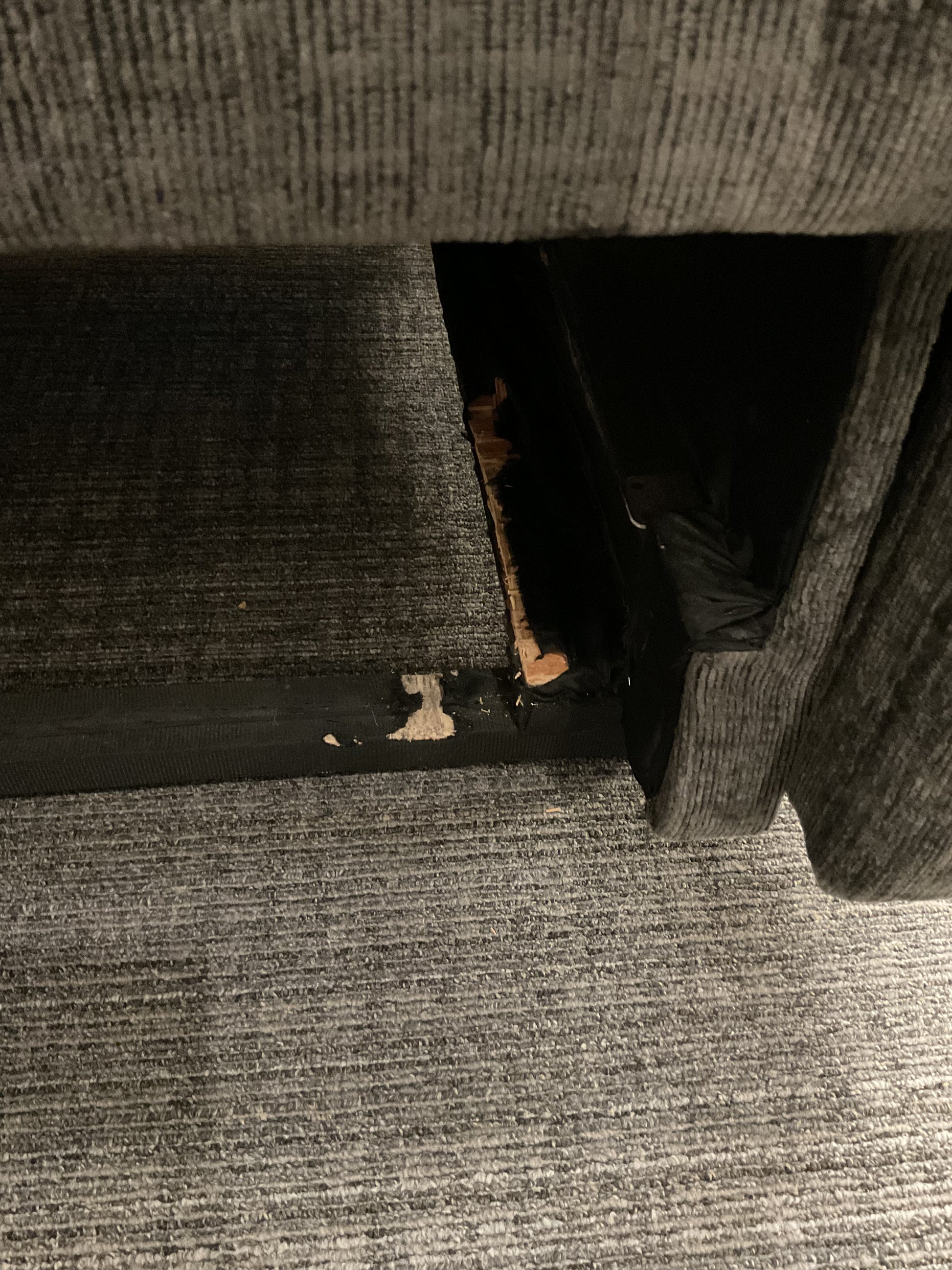 Upgrade your living room with our Wednesdays Sofa. This sleek dark grey sofa not only adds a touch of modern elegance, but also has the practical function of transforming into a comfortable futon. Perfect for hosting guests or simply lounging in style. See photos for damages.