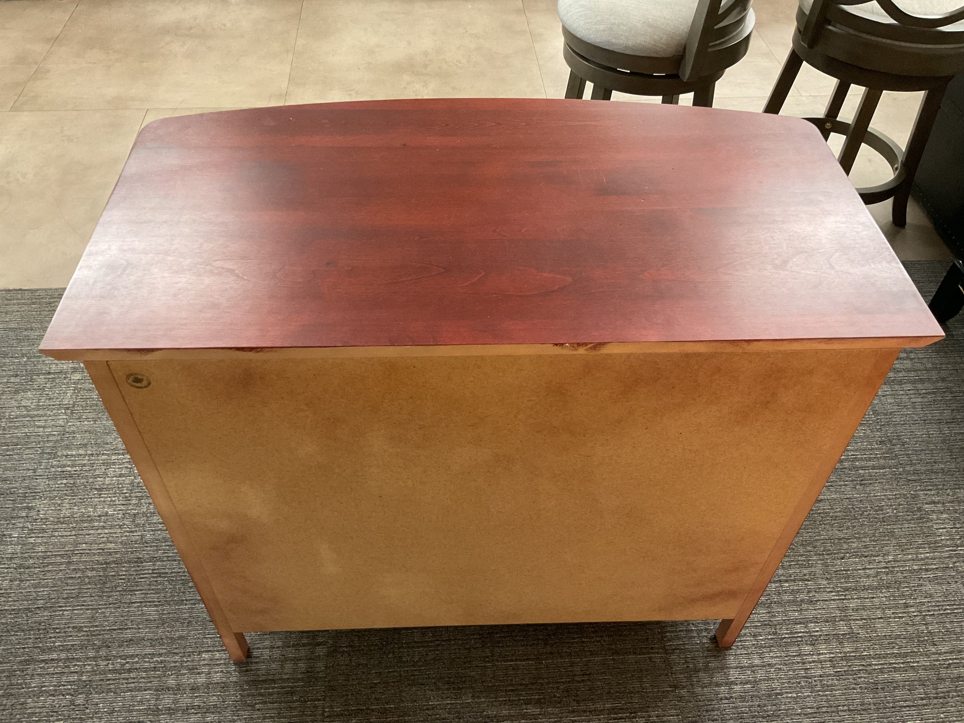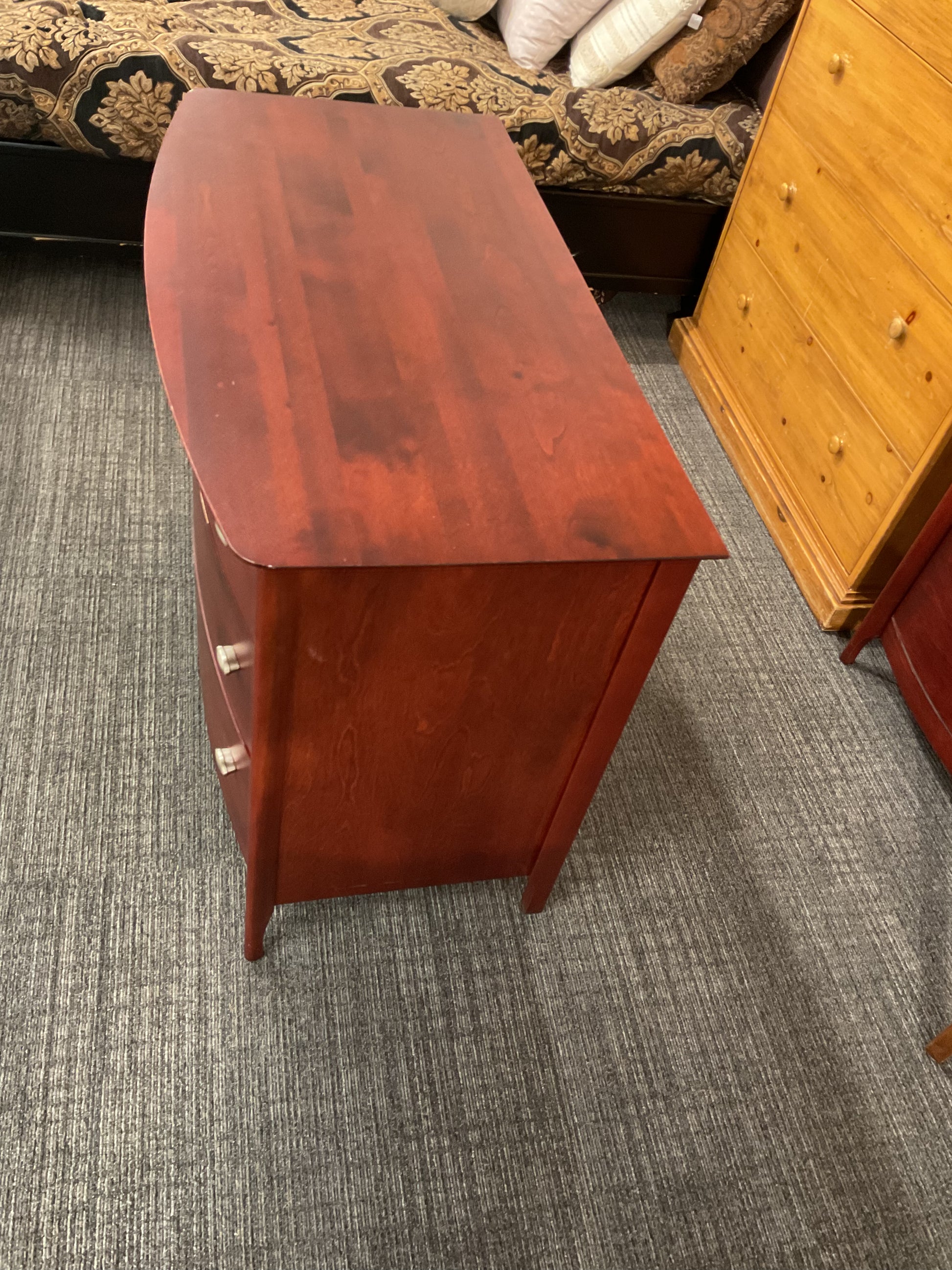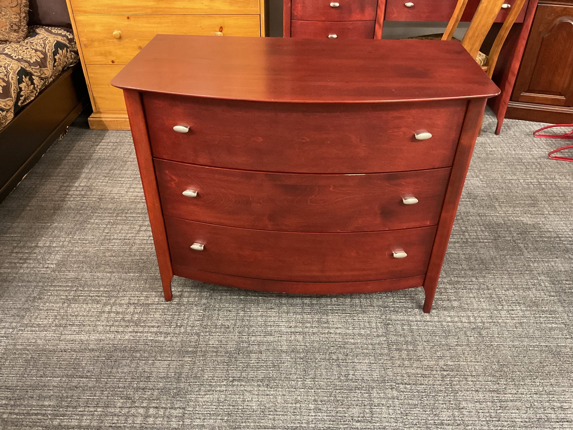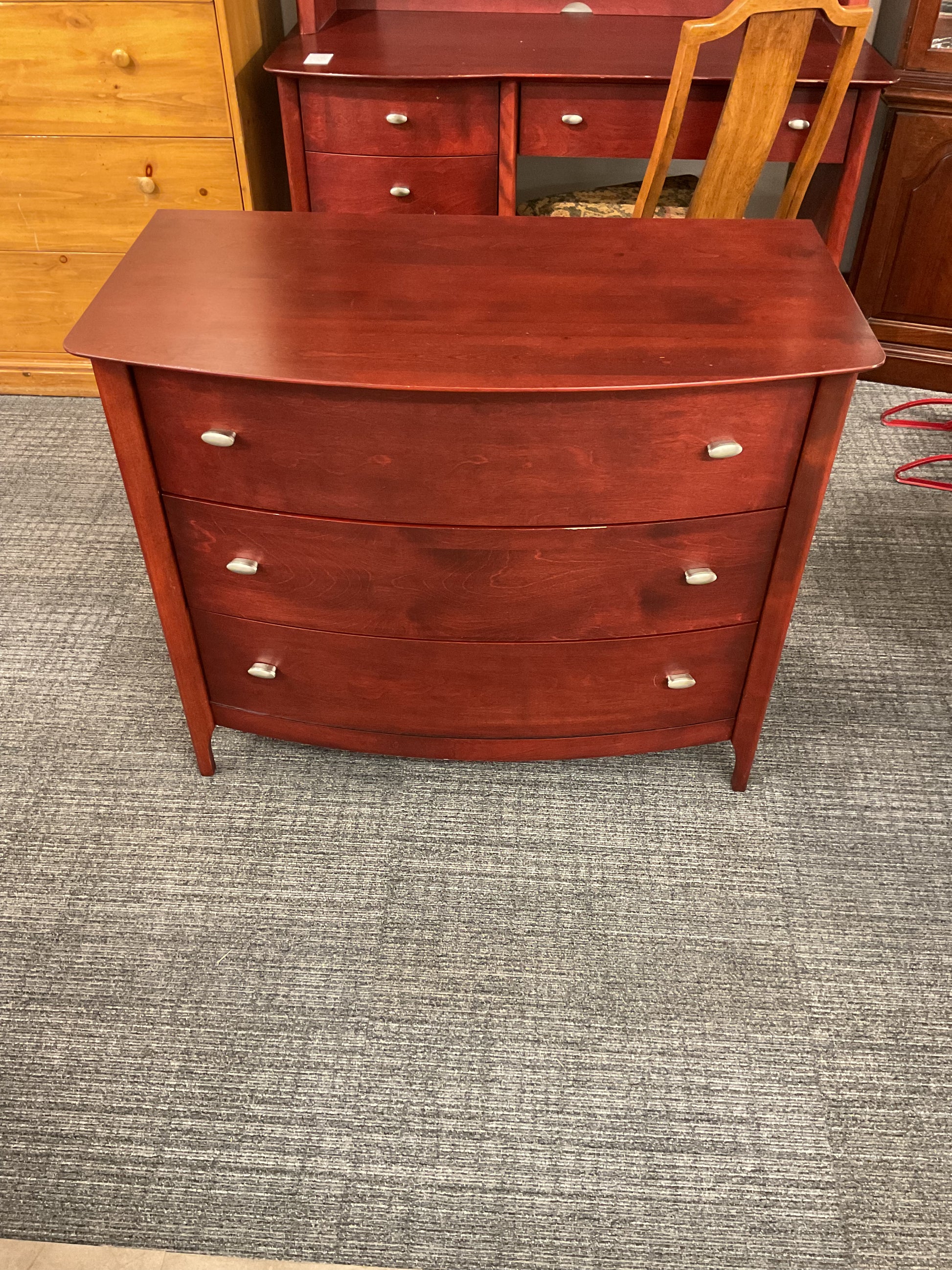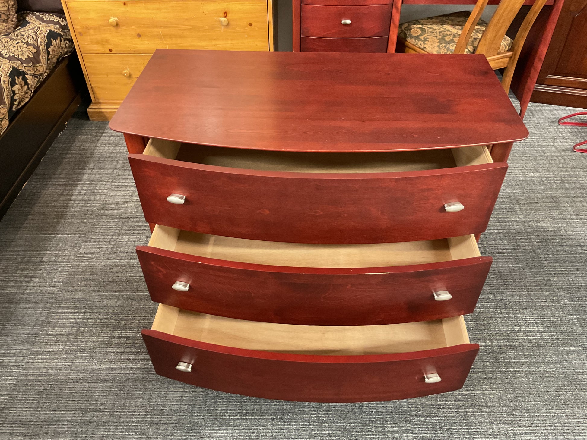 This 3 drawer dresser has a warm dark cherry finish. This dresser offers ample storage space as great functionality.