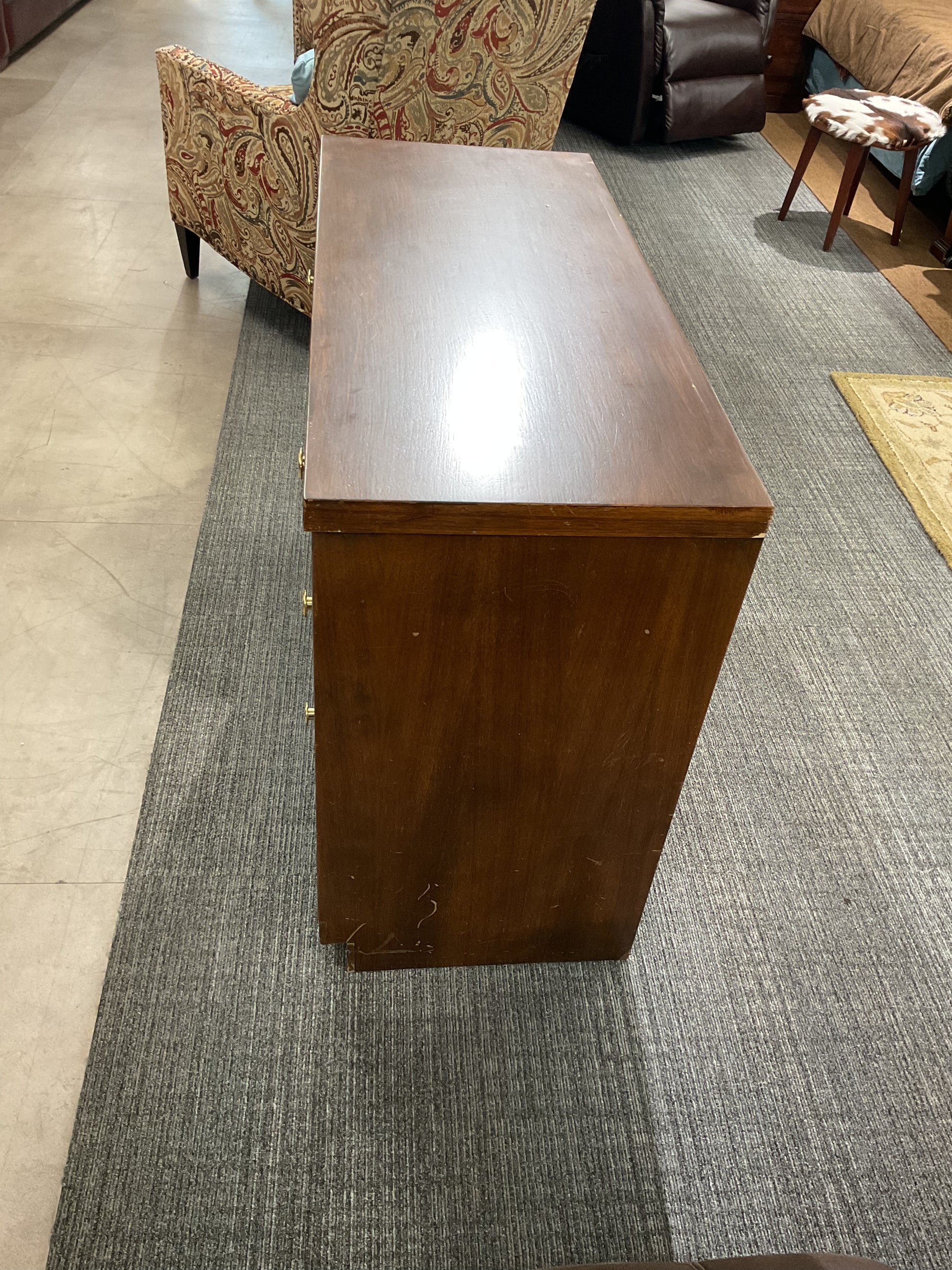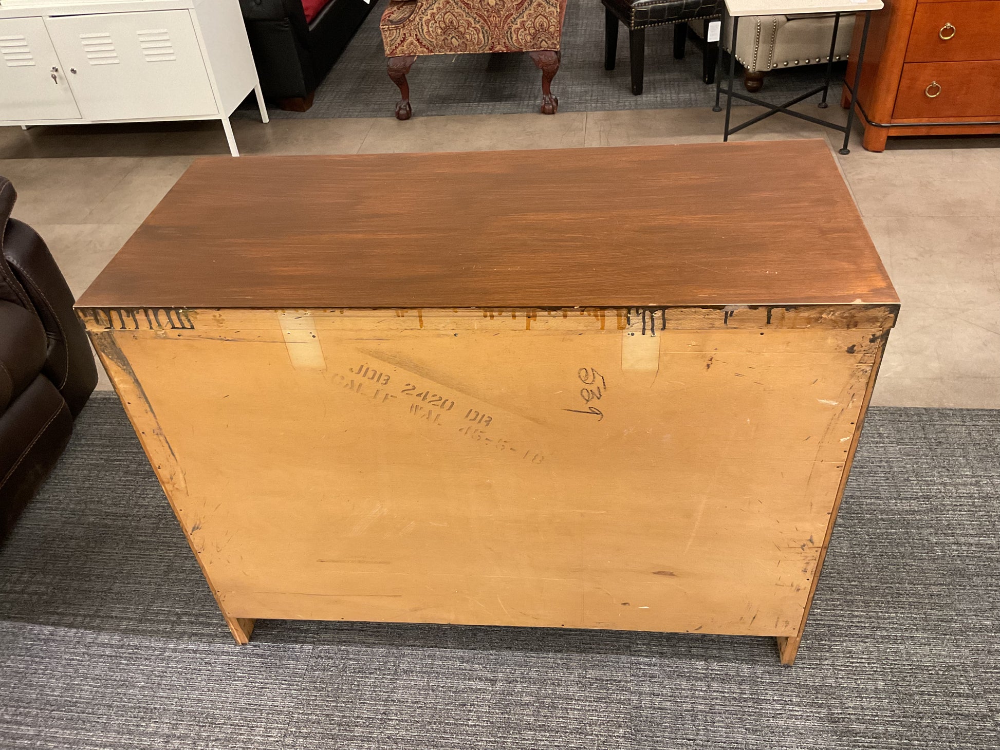 This 3 drawer dresser has gold diamond shape knobs and is great storage space for clothing and other necessities.