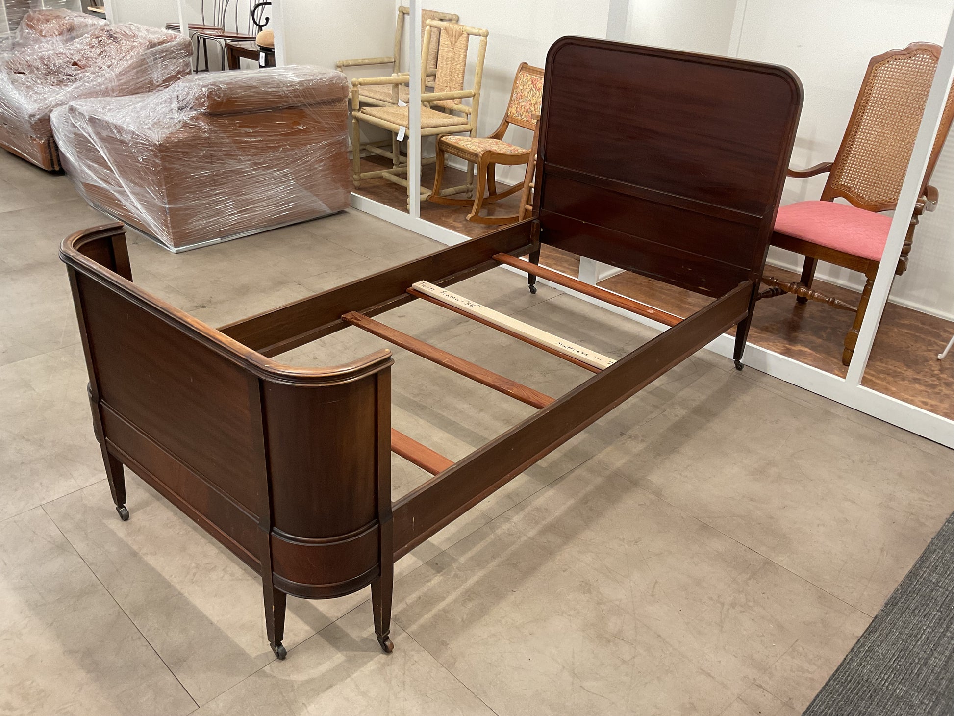 The Polar Express Twin Frame (B315) is a twin size bed frame constructed with solid antique wood, providing durability and style to your bedroom. Made with high-quality materials, this bed frame will ensure a comfortable and secure sleeping experience. Refer to photos for damages.