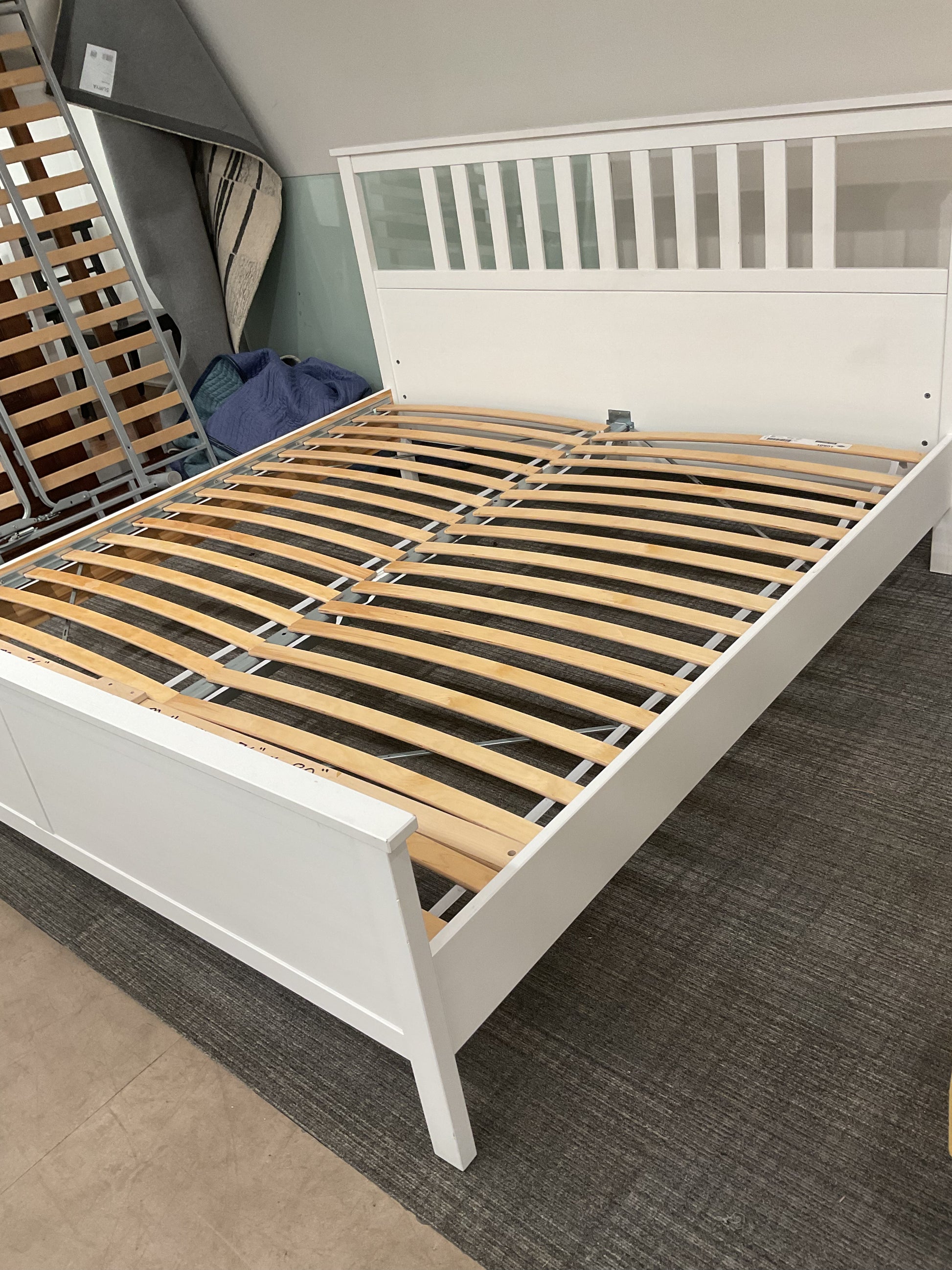 White bedframe, perfect for your king mattress refer to photos for imperfections H-47”W-81”D-84”
