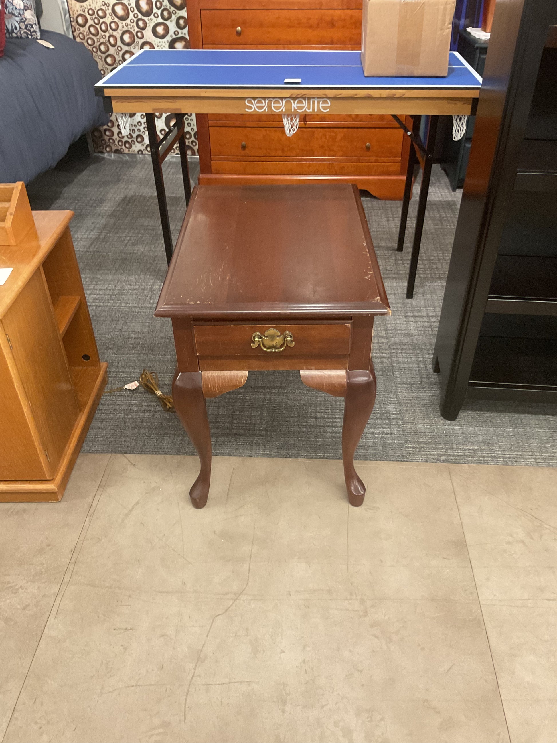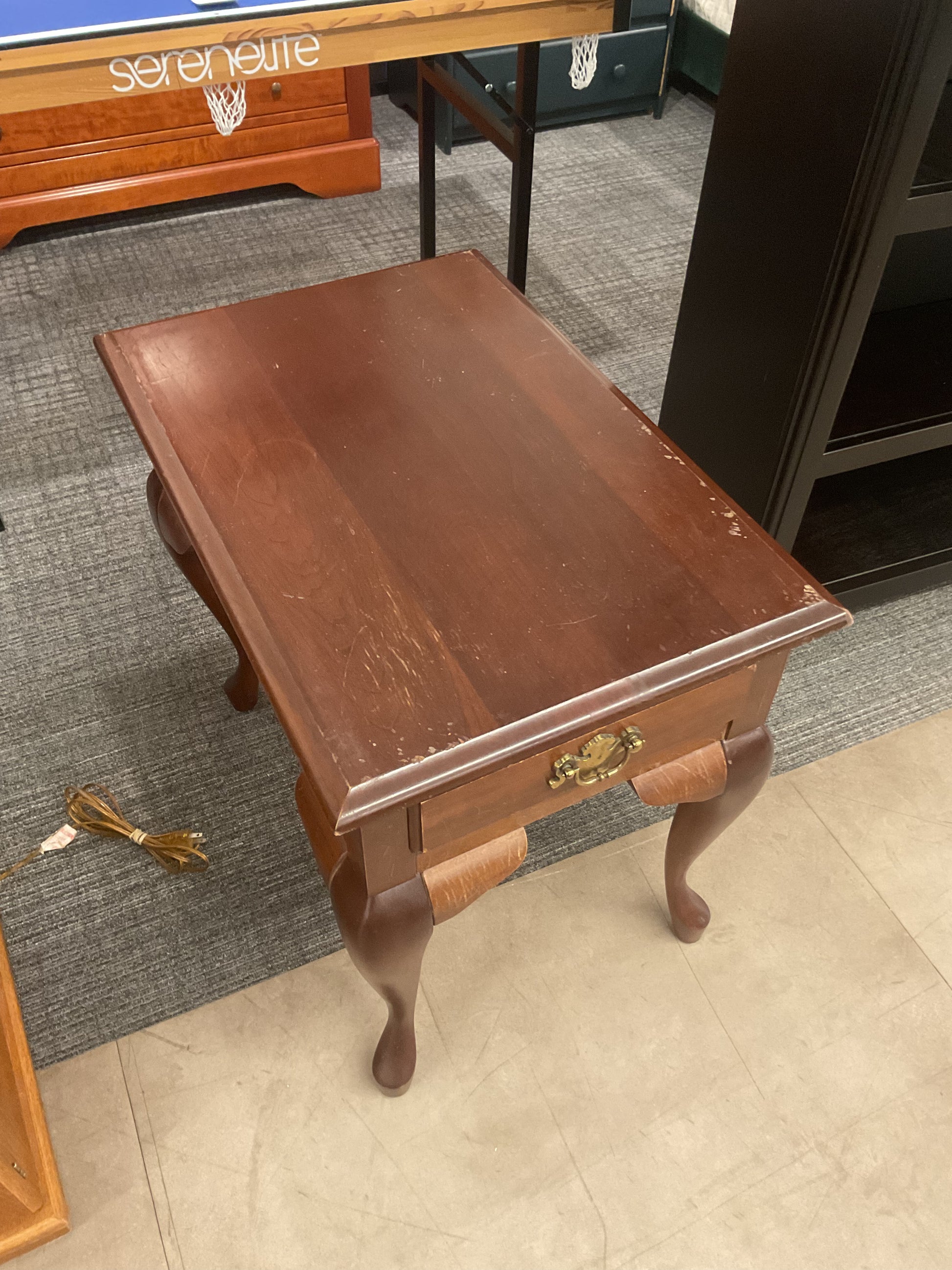 The Small Side table offers a compact and stylish solution for any room. With its compact design, it maximizes space while providing a functional surface for everyday use. Crafted with high-quality materials, it adds a touch of elegance to your home decor. Perfect for small spaces. Refer to photos for damages.