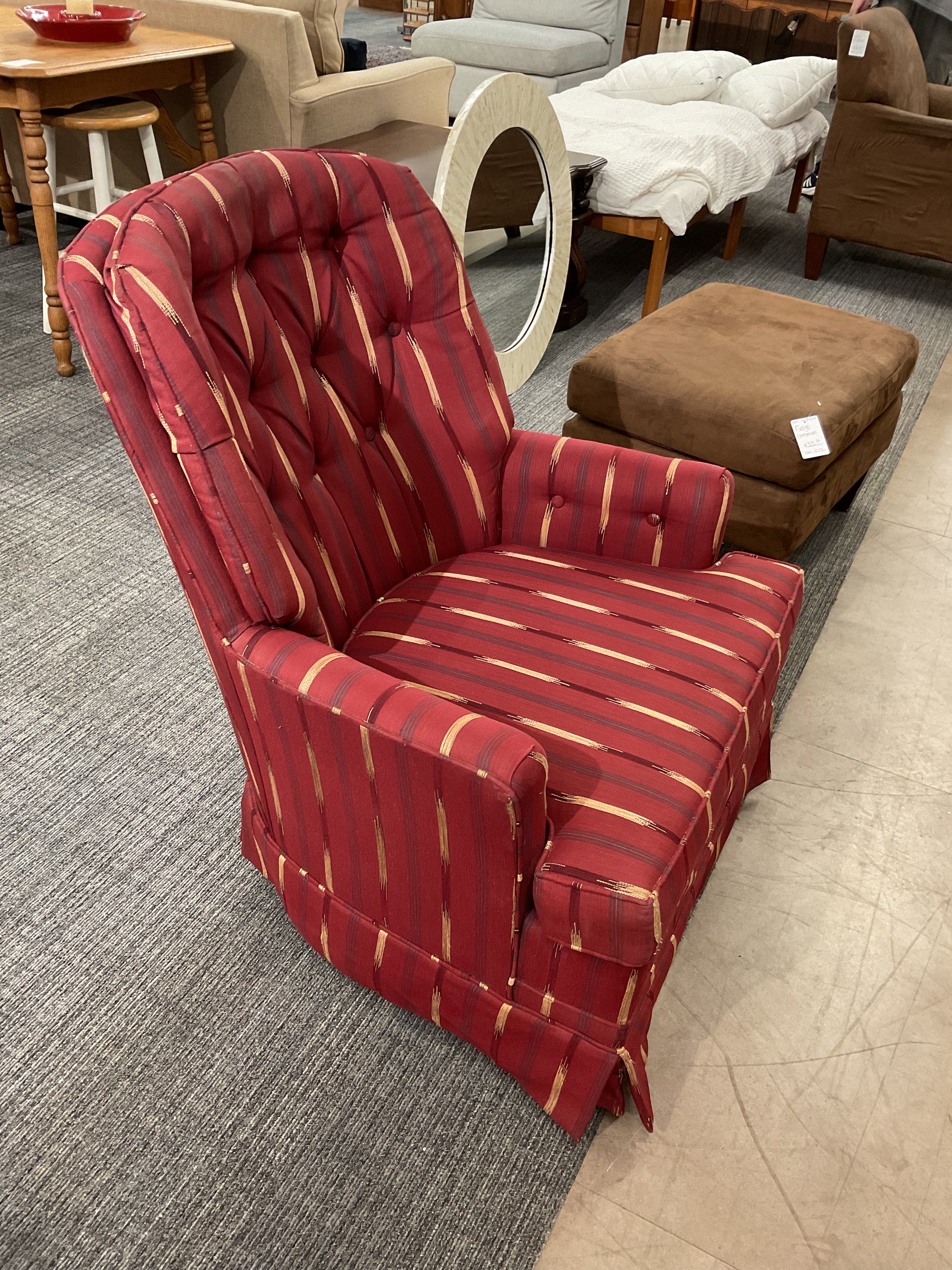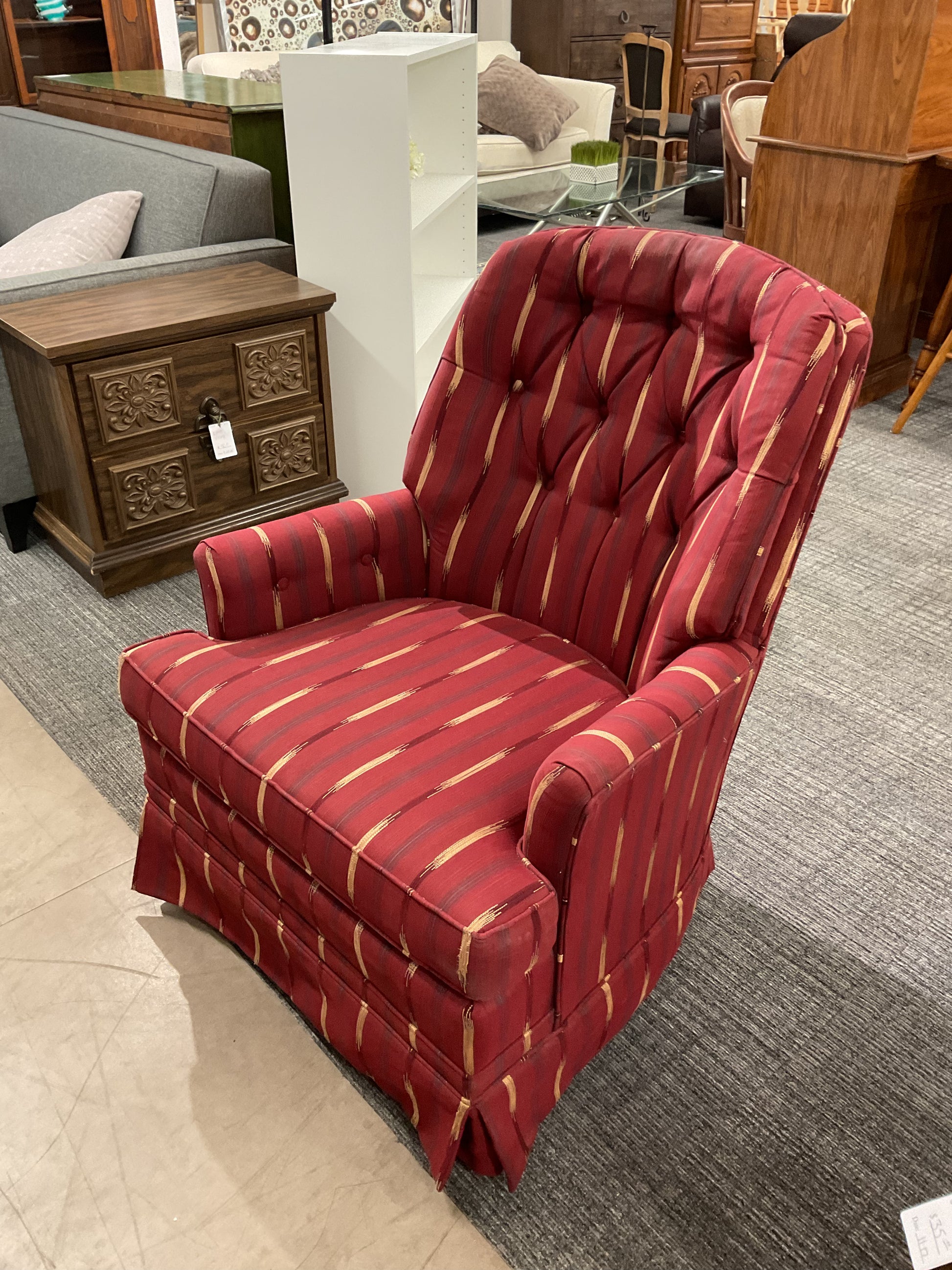 Experience the comfort of our Uncle Rick Rocker, a classic swivel rocker in a timeless red color. With its older style design, you can relax and rock in style and comfort. Perfect for any living space, this rocker is a must-have for those looking to add a touch of nostalgia to their home decor. Refer to photos for stains or damages.